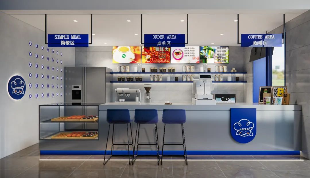 店里以蓝色为主点缀白色