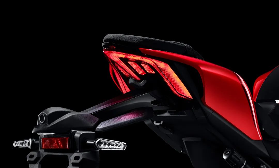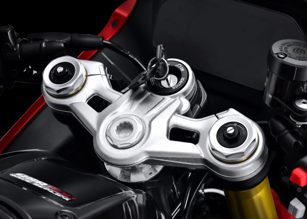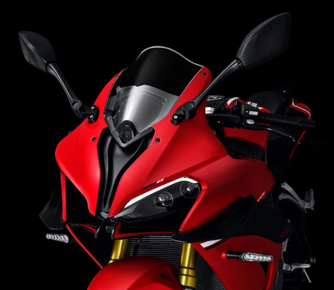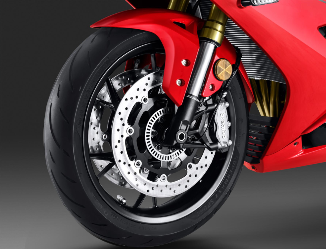 下面看下车辆细节,前大灯采用了4颗灯珠的设计,在导流罩下有一个圆圆的部位,预计应该是行车记录仪,转向灯也是采用的CBR一样的设计,在侧包围上,没有集成在后视镜上差评。上三星的造型和质感看起来还不错,前减震可以看到调节旋钮,预计前减震是采用的预载回弹阻尼全可调。前刹车可以看到采用是Brembo品牌的,前减震使用是马祖奇倒置减震,前后双通道ABS肯定不会缺席。