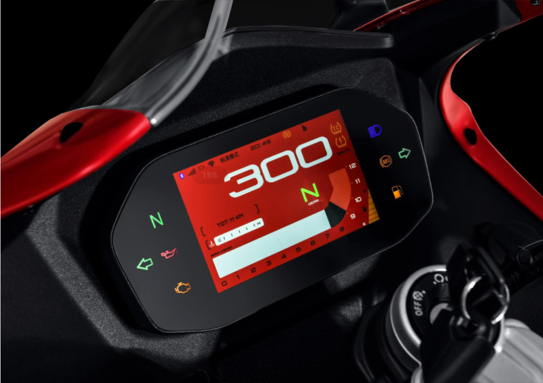 仪表的UI也进行了重新设计,蓝牙连接可以看懂,车机互联嘛,但是信号标识、电池标识和WIFI标识不知道代表什么意思,并且这几个图标的UI就是把手机的UI设计直搬了过来,从仪表可以看到ABS和TCS都是有的,其他电控方面要等摩博会现场才可以得知,届时我们也会去摩博会现场,并且我会带一块磁铁过去,看看谁用铁谁用铝?