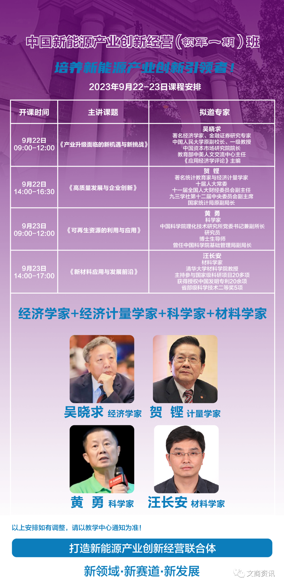 对于广大企业家而言,“风、光、水、核,动能、氢能、储能、智能” 等新能源产业前景无限,是企业创新谋发展的新蓝图、新赛道,是企业奋斗启新篇的新机遇、新引擎。《中国新能源产业创新经营班》依托清华大学等高校的院士科学家及智库产业强大资源, 打造 “新能源产业一政产学研用” 创新联合体!赋能和培育“新能源产业创新经营引领者” !企业赖之以强,国家赖之以盛!