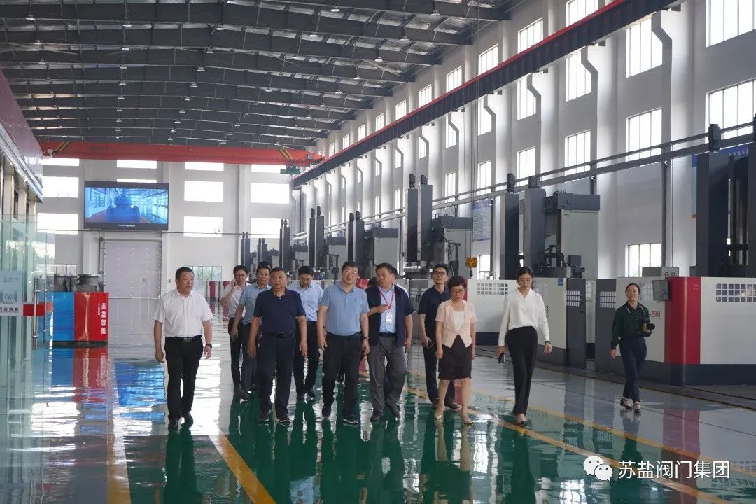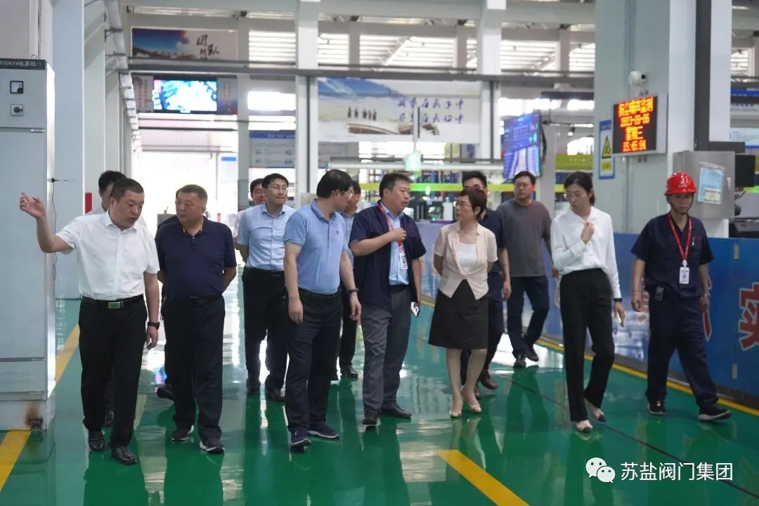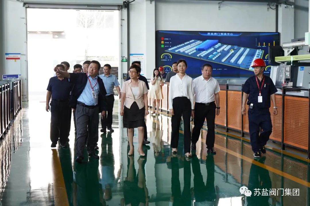 调研组一行实地考察了公司麦科智能车间的生产现场。李一华向调研组领导详细汇报了公司麦科车间建设,智能化、自动化生产装备运用情况,公司在绿色发展、低碳发展方面的工作和投入情况,产品市场以及公司的整体运行效益的相关情况。调研组一行高度评价了苏盐发展取得的成效,对公司在智能化装备方面的投入表示赞许,认为苏盐公司作为地方阀门行业的龙头企业,能够积极落实市委绿色低碳发展的部署要求,积极应对市场风险和挑战,加快推进公司智改数转,扎实推进新旧动能转换,优化发展方式,推动转型升级,绿色低碳发展工作有力,成效明显,不但有力支撑了地方经济发展,也为全市同类型企业树立了榜样。