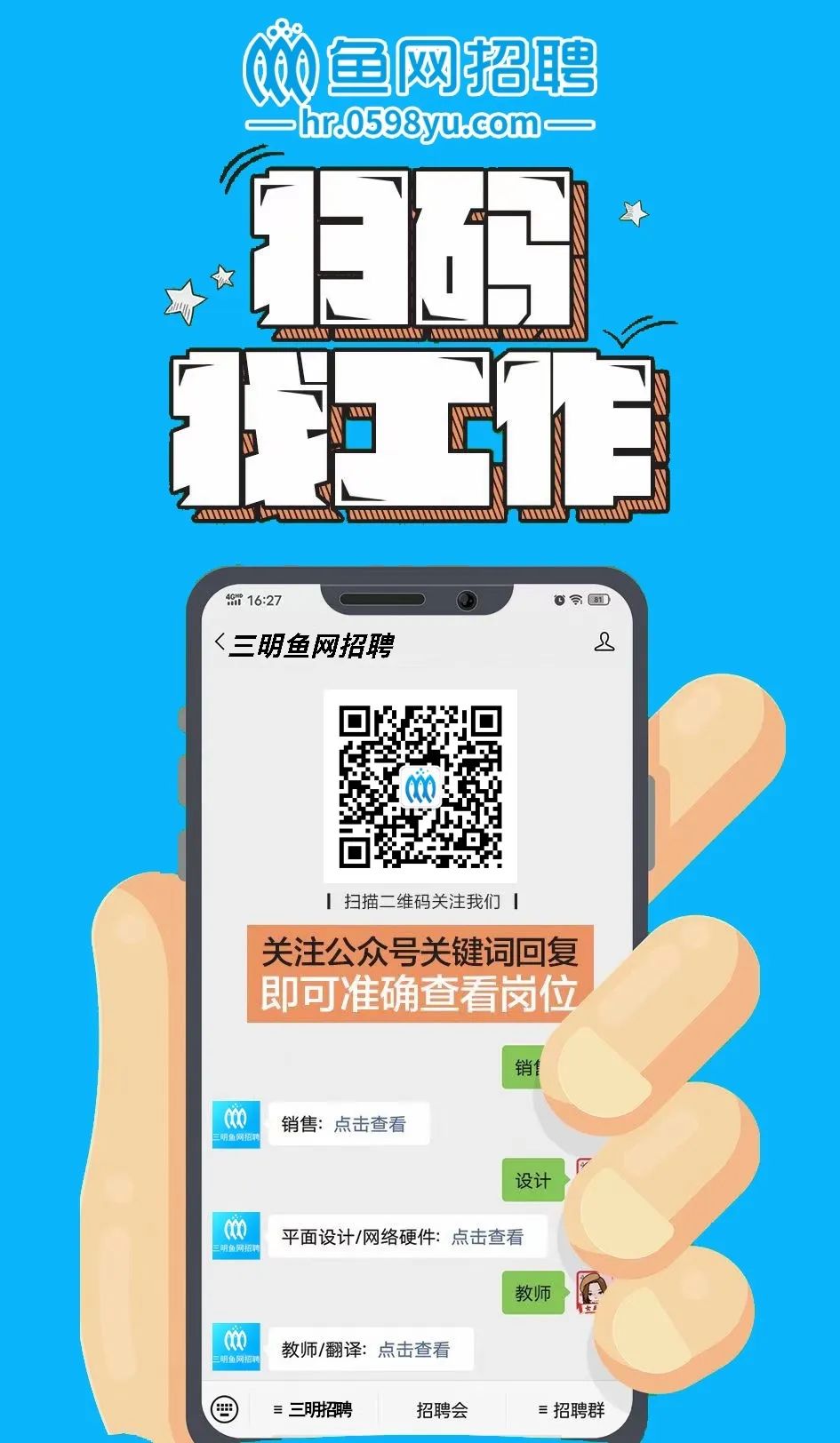 扫码关注三明鱼网招聘