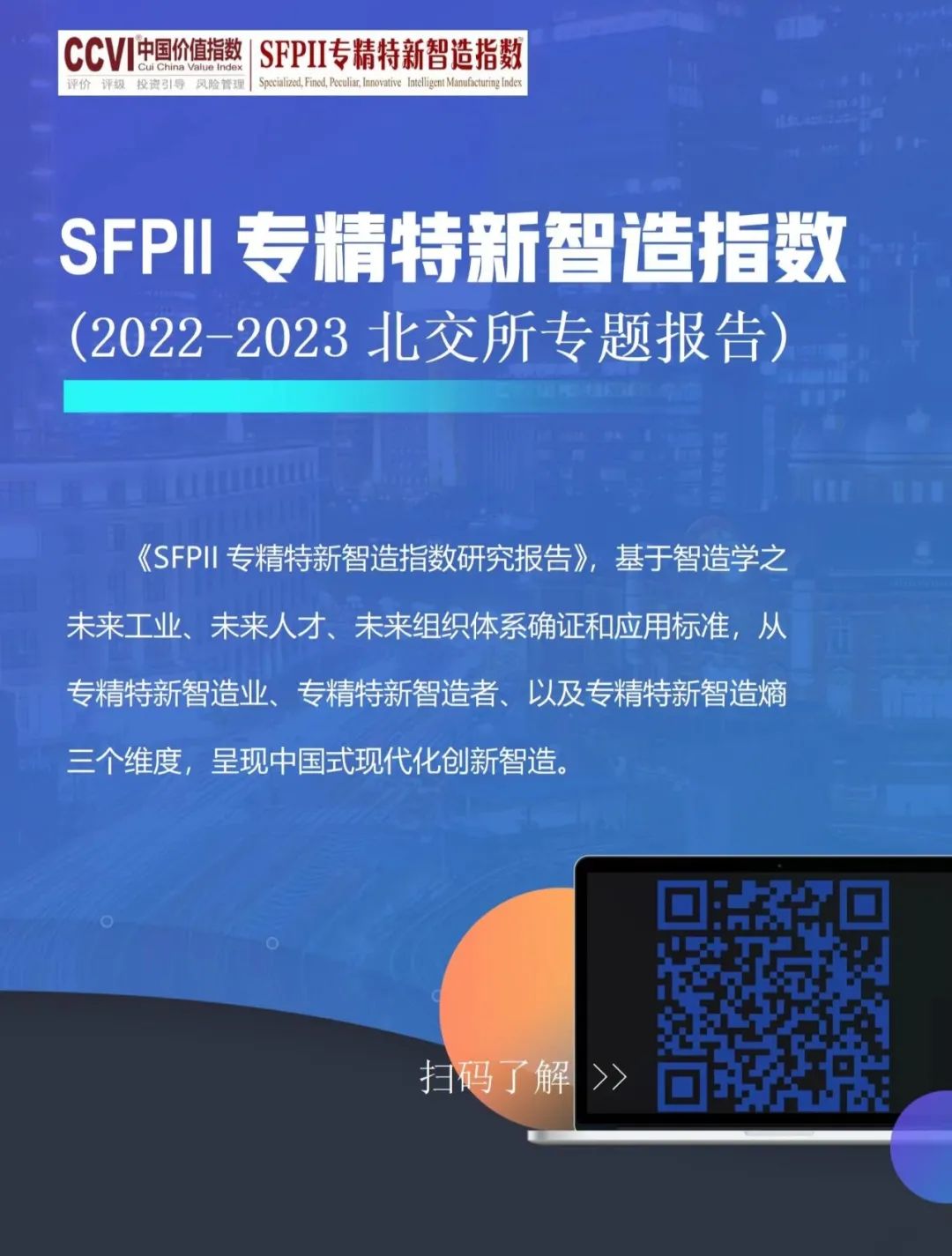 SFPII专精特新智造指数(Specialized\Fined\Peculiar\Innovative Intelligent Manufacturing Index,英文缩写SFPII),是反映专精特新企业从制造向智造、高质量发展的评价评级工具,致力于成为专精特新企业国际对标、专精特新资源优化、专精特新全球产业链供应链安全评估和价值导向的罗盘和趋势性指标。