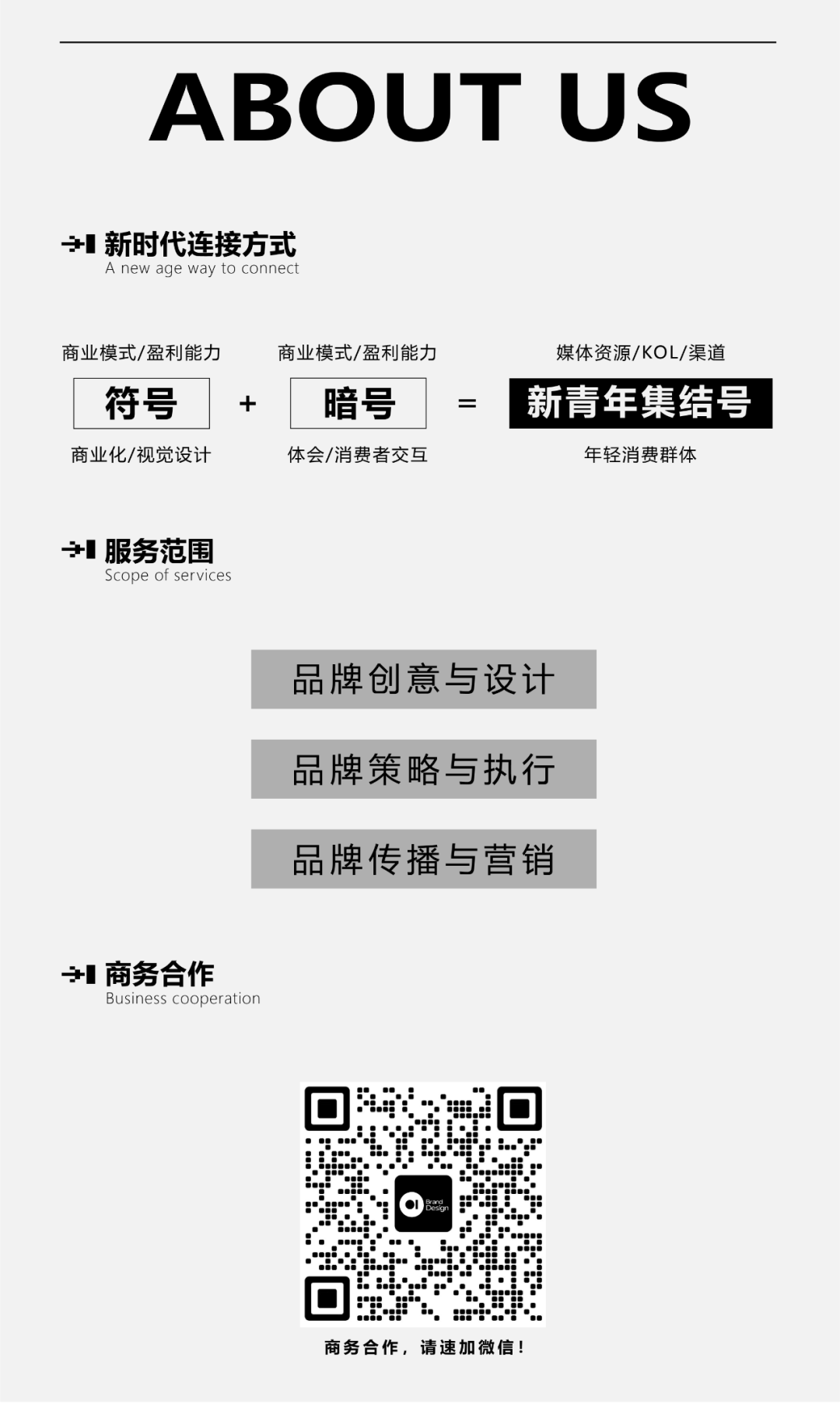 01品牌设计院,将对互联网时代、新青年群体等更多的思考和理解融入设计,用年轻人的语言、审美、行为、个性、文化构建品牌符号,创造与之对应的场景,让品牌成为感召年轻人的一面大旗, 与年轻人建立亲密有效的互动关系。