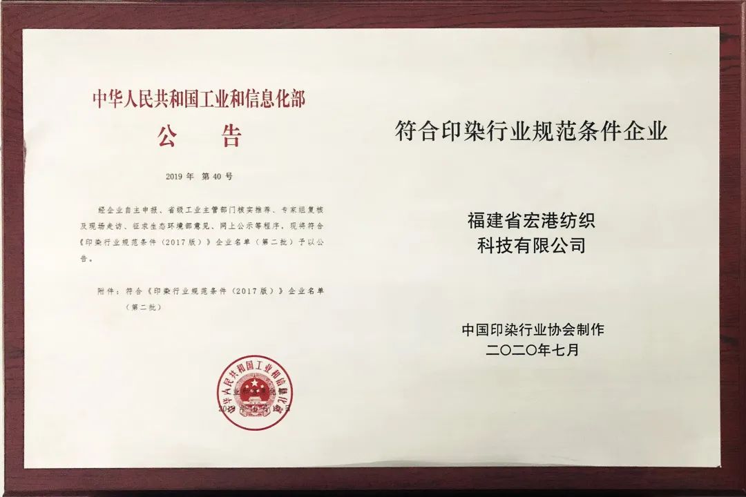 先后通过了ISO 9001质量管理体系、ISO 14001环境管理体系、OHSAS 18001职业健康安全管理体系、Oeko-Tex Standard 100生态纺织品、GRS全球回收标准、安全标准化以及两化融合管理体系等认证。 先后通过LIDL客户的“金牌”认证、ZARA客户的“绿牌”认证、实验室通过一线品牌M&S、H&M、VS认证。 通过福建省高新技术企业及国家高新技术企业认定,通过福州市经信局评选的“福州市企业技术中心”,获得福州市政府颁发的“福州市产品质量奖”。 被国家工信部评选为“国家级两化融合管理体系贯标试点企业”,被福建省经信委评为“智能制造试点示范企业”。 被中国印染行业协会评为“中国印染企业20强”,同时获得“优秀面料一等奖”荣誉称号。 2015年荣获瑞典斯德哥尔摩国际水平衡组织颁发的“纺织行业可持续用水项目最佳节水奖”。 2017年10月,荣获中国环境报颁发的“2017年度绿色企业管理奖”。 2018年,荣获国家工信部评选的“绿色工厂”荣誉称号,成为福建省唯一一家当选的面料纺织企业。 2019年10月,通过国家工信部印染行业规范公告管理,符合《印染行业规范条件(2017版)》,成为福建省内首家通过该标准的印染企业。 2019年12月,被福建省工信厅认定为“节水型示范企业”。