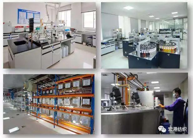 在设备设施投入方面,宏港纺织先后引入自动滴液系统、Datacolor颜色分析仪,通过自动化设备代替感光辨别,提高颜色的重现性,确保了质量的稳定性和可控性。为积极打造自动化生产流程,染色车间引入自动称料系统(自动称料房,与传统染整比较避免用手工称料、称助剂产生的误差,降低生产品质问题的产生,同时对产生的故障、多称、少称起到报警作用,也避免了现场称料引起飞料导致沾污等情况)、自动化料系统(每个染缸都有独立的送料管道)、自动称助剂系统、自动包装系统以及中央控制系统(MES)、ERP管理系统,不仅能够自动监控用水量、用电量等各项指标,还能自动控制染色温度。