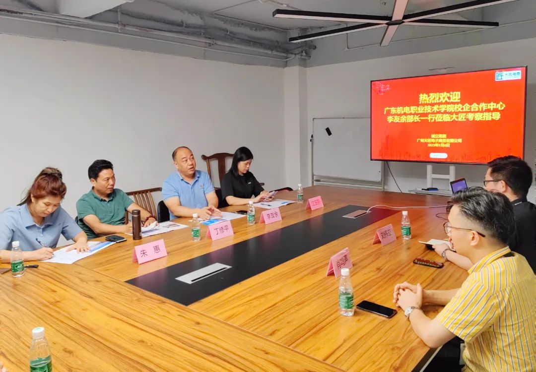 参观完公司后,双方进行了友好深入交流。广东机电职业技术学院与大匠电商是多年的合作伙伴,校企双方在多个方面都有良好的合作。会上,李友余部长表示,在原来的合作基础上,通过“协同育人、协同服务、协同创新”,开展创业型订单班等形式的合作,构建校企合作命运共同体,打造广东机电职业技术学院与广州大匠电子商务有限公司的合作IP,打造产教融合引领标杆。丁修平副院长对合作如何更好地落地发表了自己的看法。对于校方提出的合作愿景,大匠电商两位负责人当场表示认同和支持,下一步将深化合作,努力将产教融合做实做强。