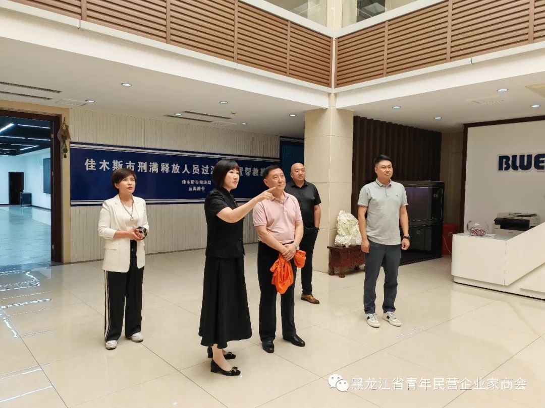 9月7号下午,黑龙江省青年民营企业家商会副书记、秘书长齐跃清,省青商会副会长、佳木斯工商联副主席、黑龙江华强集团总经理张洋洋,佳木斯工商联副主席、佳木斯市潜兴农业机械研发有限公司总经理王慧一行调研考察了商会常务副会长单位蓝海股份有限公司。省青商会常务副会长、蓝海股份有限公司总经理王彦霖,佳木斯市中意保险公司 总经理 、佳木斯市远东现代企业家俱乐部 副理事长闫志军,黑龙江省绿色希望庄园牧业有限公司董事长、 佳木斯市远东现代企业家俱乐部 秘书长胡健伟,佳木斯市佳大建筑总经理 、佳木斯市远东现代企业家俱乐部副秘书长李成玲,佳木斯市惠美居物业公司 总经理、佳木斯市远东现代企业家俱乐部服务部部长何金刚等陪同调研考察和餐叙交流。