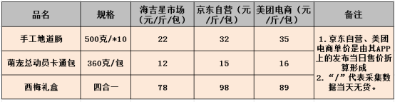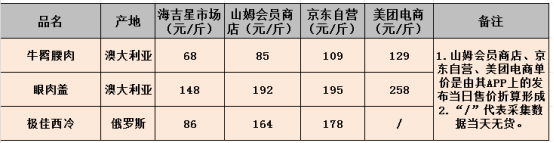 同品类牛肉产品海吉星与山姆、京东、美团价格对比
