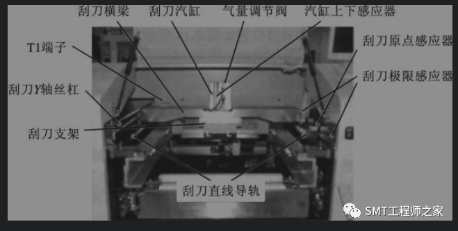 1、刮刀机构刮刀机构包括刮刀头和驱动电机,如下图所示。刮刀头在伺服电机的驱动下,沿滚珠丝杠作往返运动,通过汽缸的作用施加给刮刀压力,实现锡膏印刷。影响印刷品质的因素主要有以下几个。