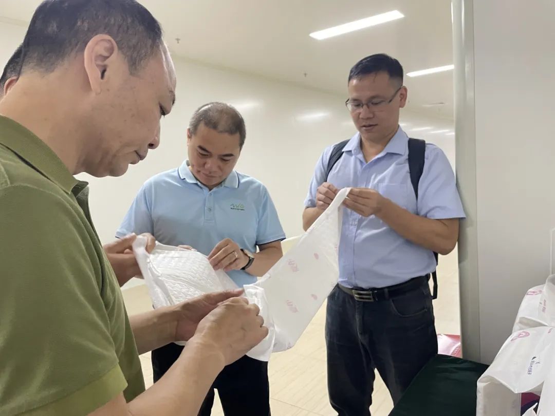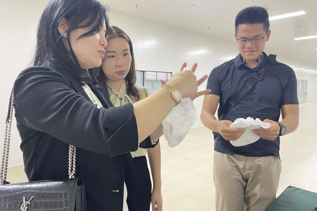 考察团在卡布集团负责人带领下参考察了园区厂房,并走进卡布纸尿裤生产车间进行参观。