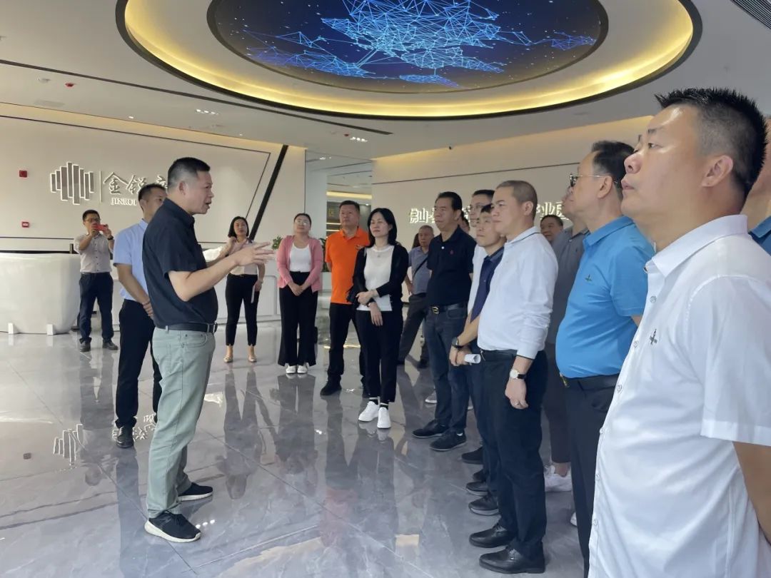 县委常委、县人民政府副县长关海权(右三)向考察团介绍产业园情况。
