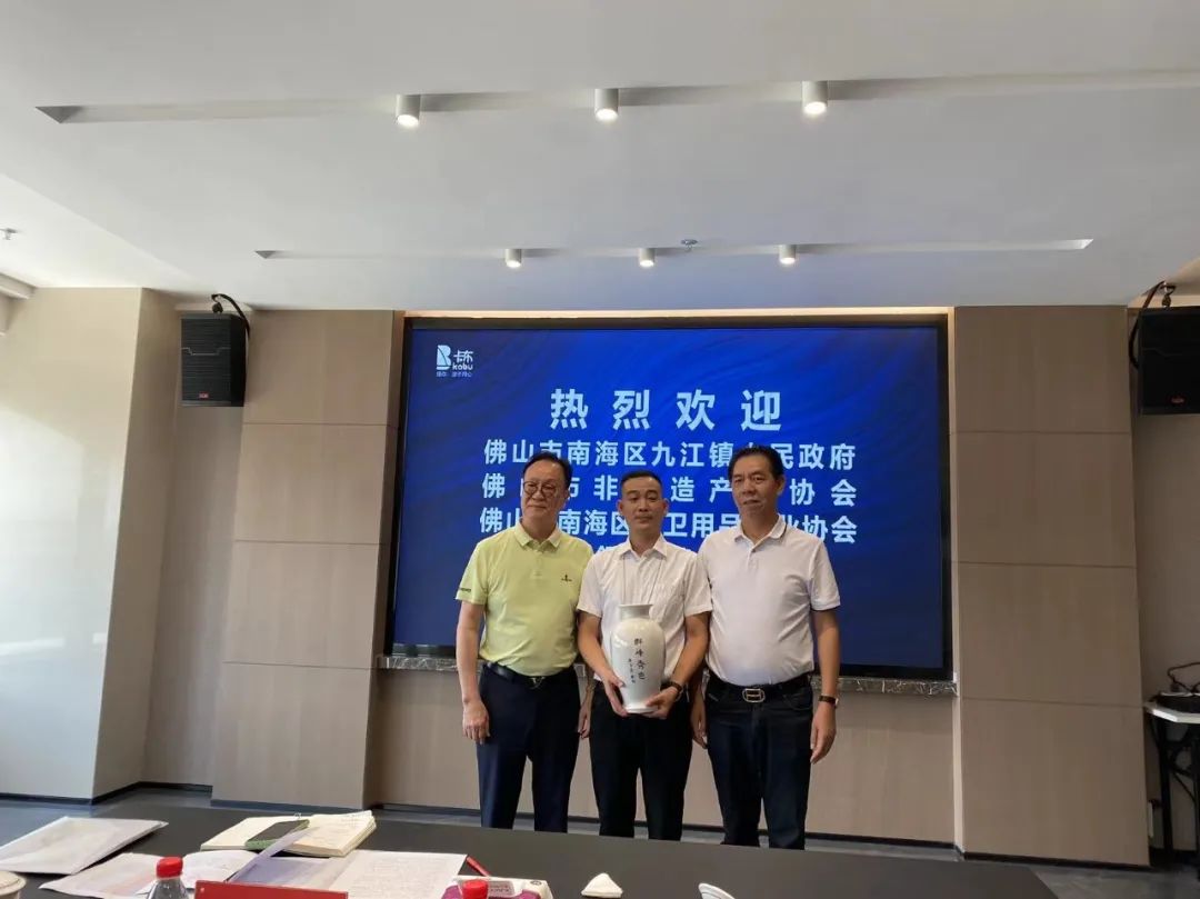 佛山非织造协会、南海医卫用协会向卡布集团赠送岭南特色纪念品。