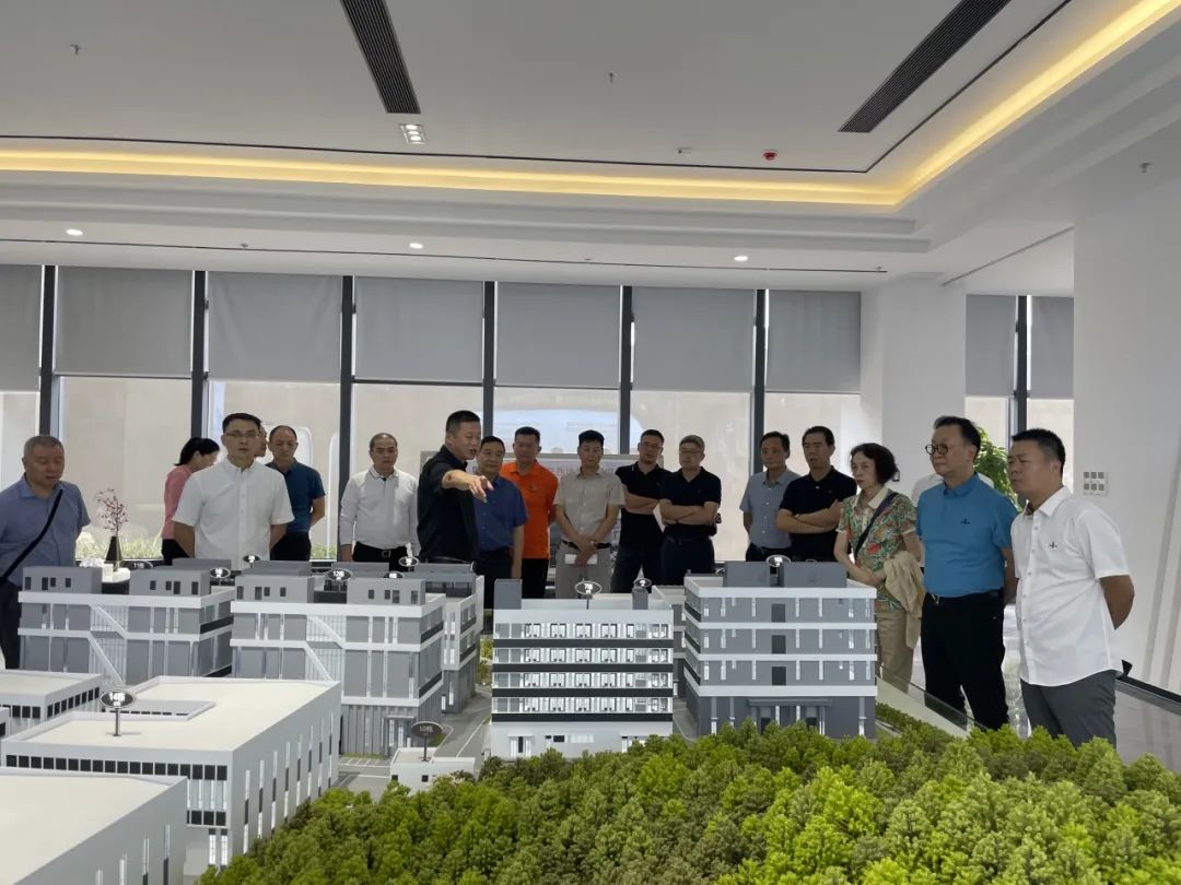 园区里到处一派热火朝天的景象,多名工人、多台挖机、大型卡车紧张施工作业,加速推进园区设施建设。关海权常委向考察团热情介绍了产业园建设情况。