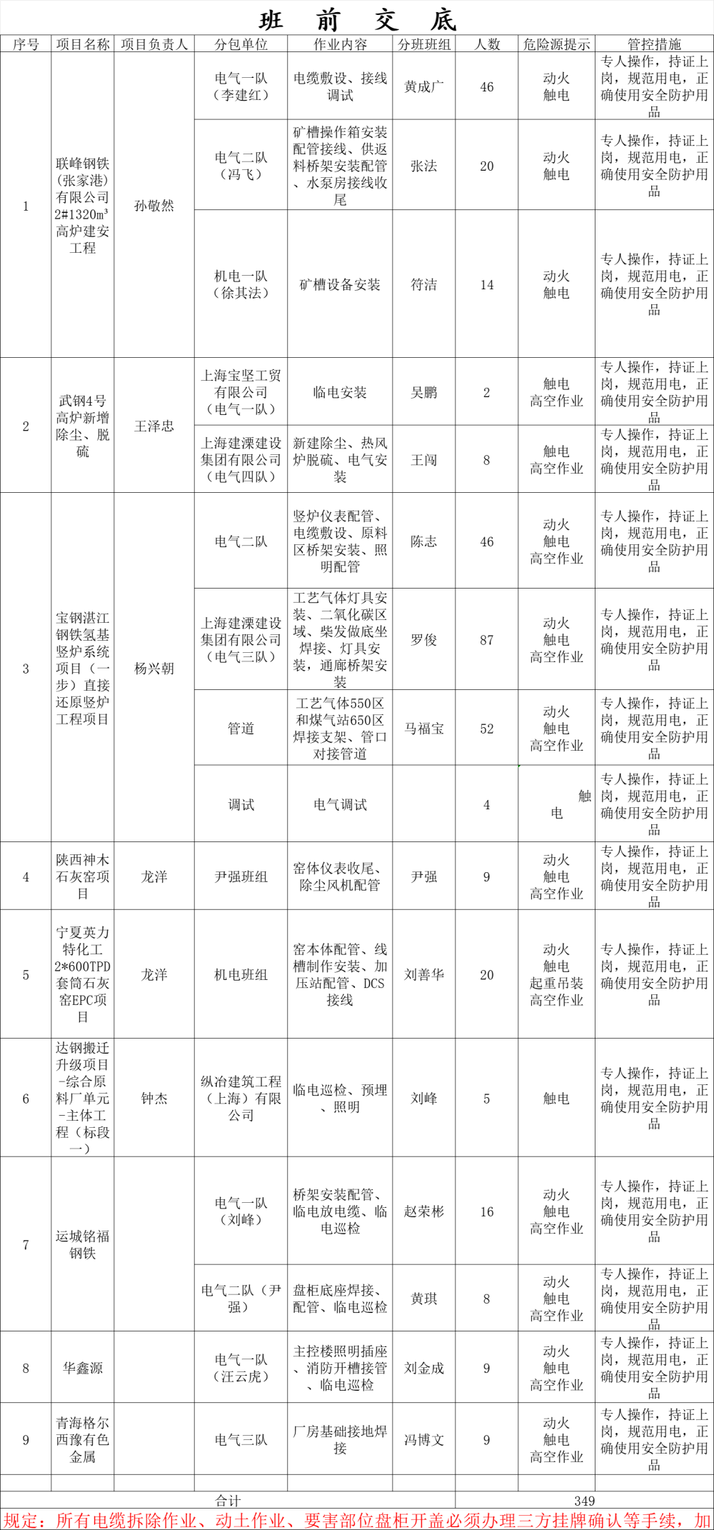 班前交底