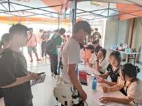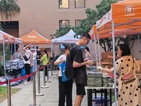 在帐篷处管理登记报名和维持秩序的迎新志愿者们一遍又一遍耐心的向前来报名的学生和家长讲解。大多数新生报道接近中午,天气炎热,为了缓解家长的劳累,志愿者们请家长在帐篷内等待,准备了凳子供家长休息,并且热情的解答家长的疑惑,让家长放心学生在学校的生活。后勤保障的迎新志愿者为全体迎新工作者准备了充足的矿泉水,丰盛的午餐,以及一些零食、雪糕和奶茶等,充分保障了迎新工作者的工作效率。