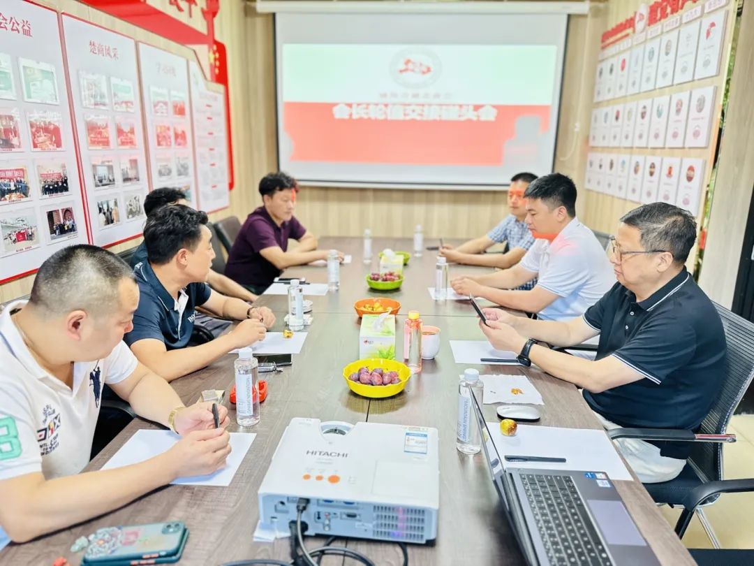 2023年9月6日,商会第三、四组轮值会长交接会在商会办公室召开。第三组轮值会长陈经华、轮值副会长金忠红,第四组轮值会长邓财林、轮值副会长胡普赐、轮值成员杨行卓、周少华出席会议,秘书长彭建国、副秘书长田杰列席会议。