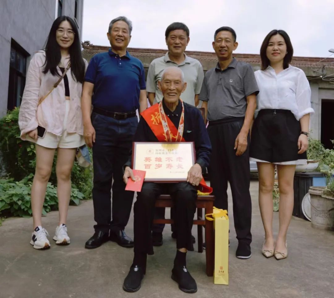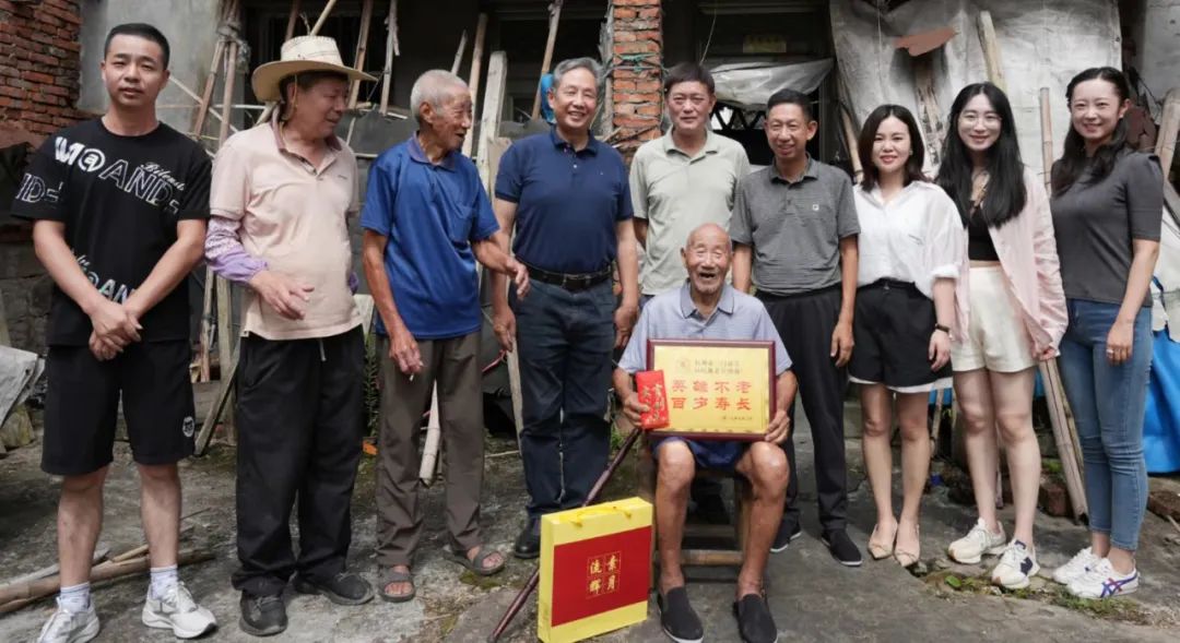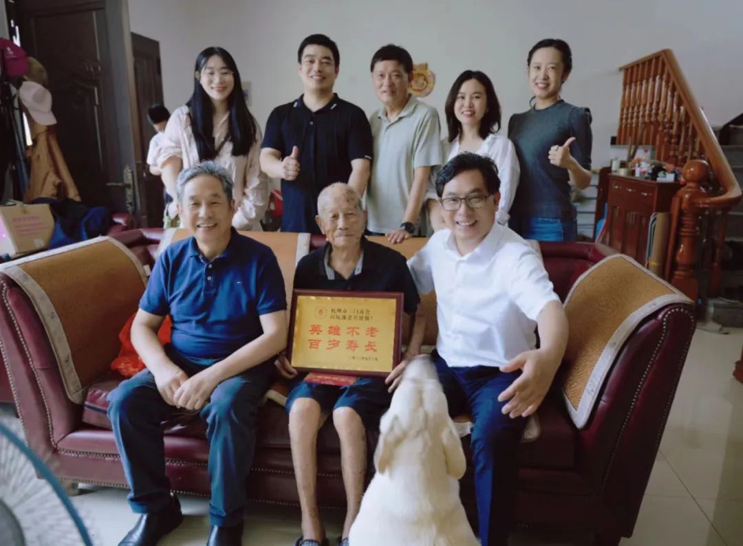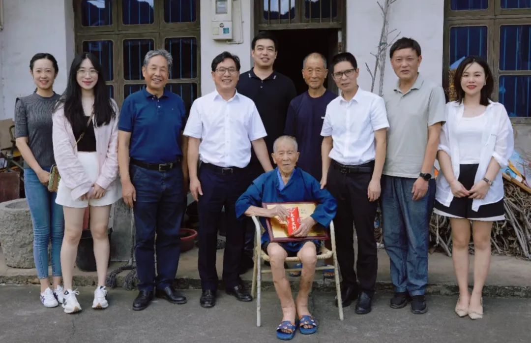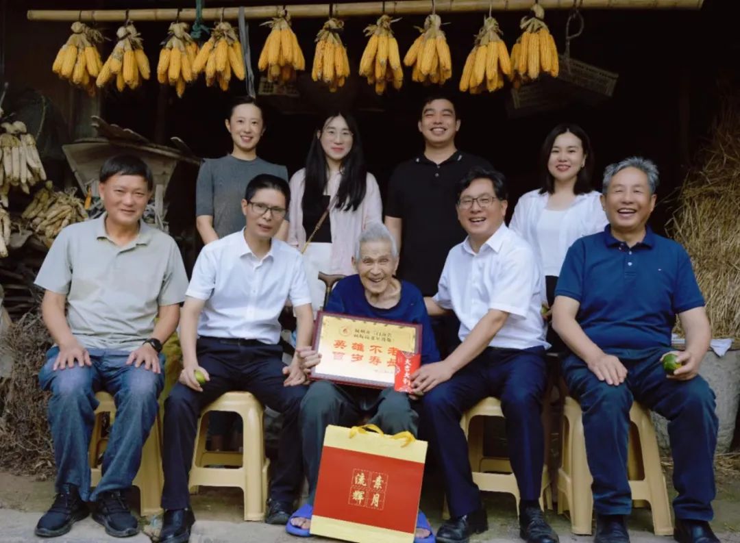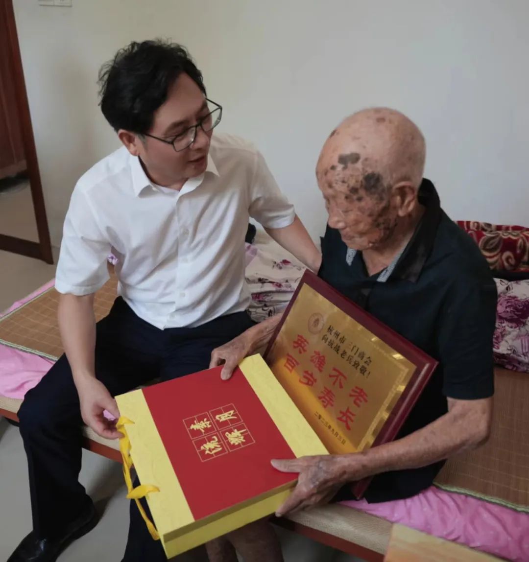 在抗战胜利78周年来临之际,9月7日,杭州市三门商会会长郑金都带队,执行会长罗仕星、常务副会长兼秘书长郑小青、监事长毛华恩、副会长兼副秘书长毛玲君、副秘书长殷聪聪、郑露露、办公室主任季嘉蓓一行,连续九年回乡看望慰问抗战老兵。三门县工商联副主席陈采芃、县政协文史专员章宏晓老师、吴晓老师全程陪同。章宏晓老师、吴晓老师热衷于三门近代史挖掘,本次慰问新增加的3位抗战老兵,就是2位老师在日常走访当中发现的。章老师还先后采集整理出版了《大义无疆》《革命先哲蒋如琮》等书。