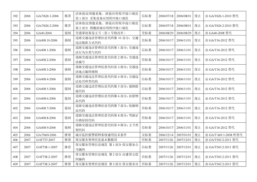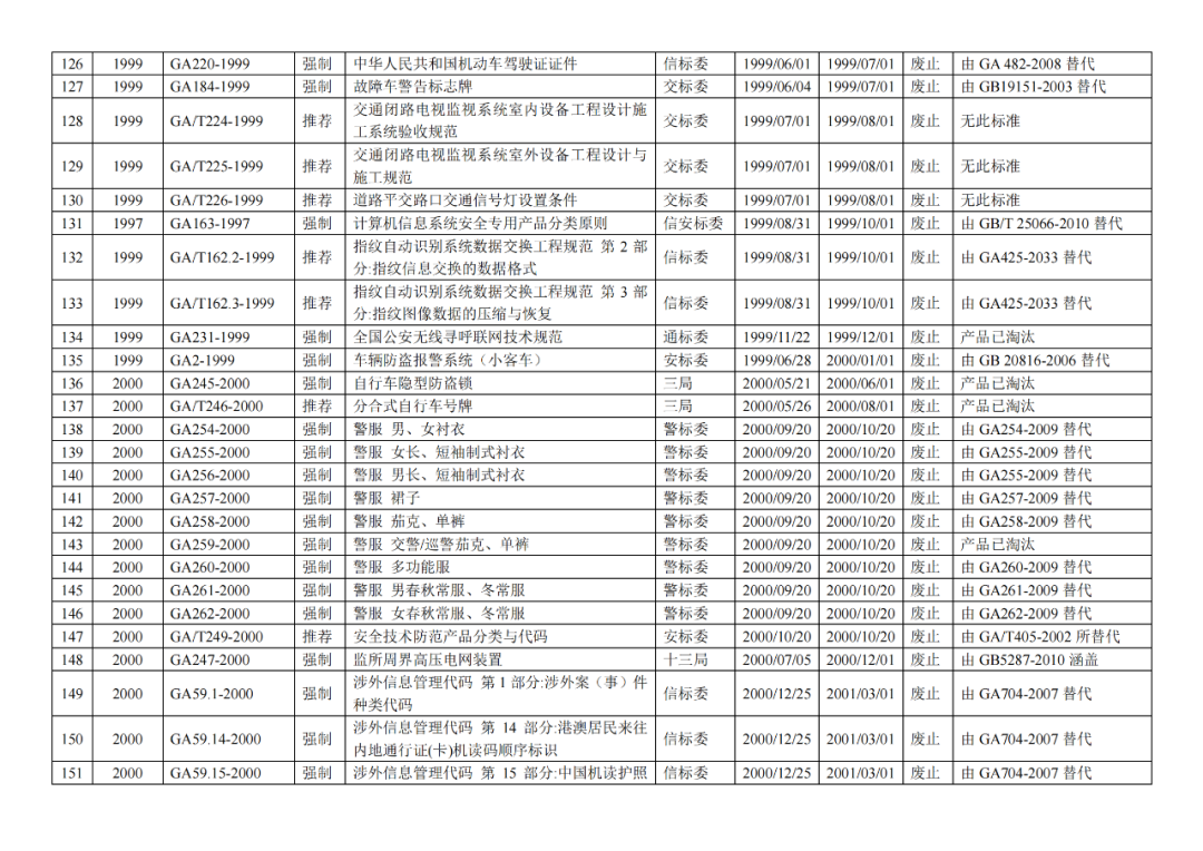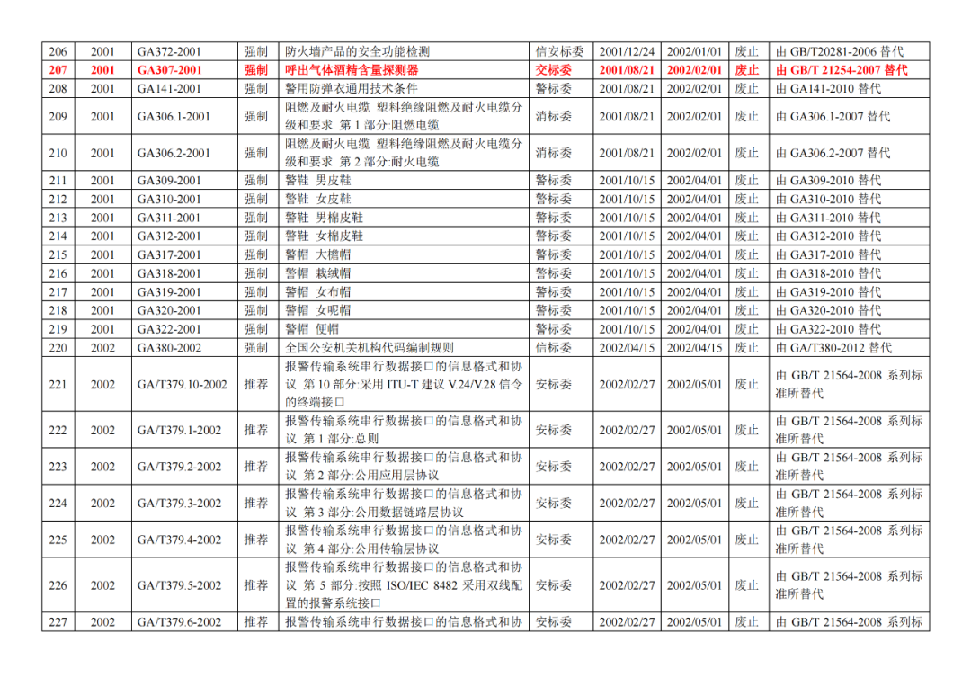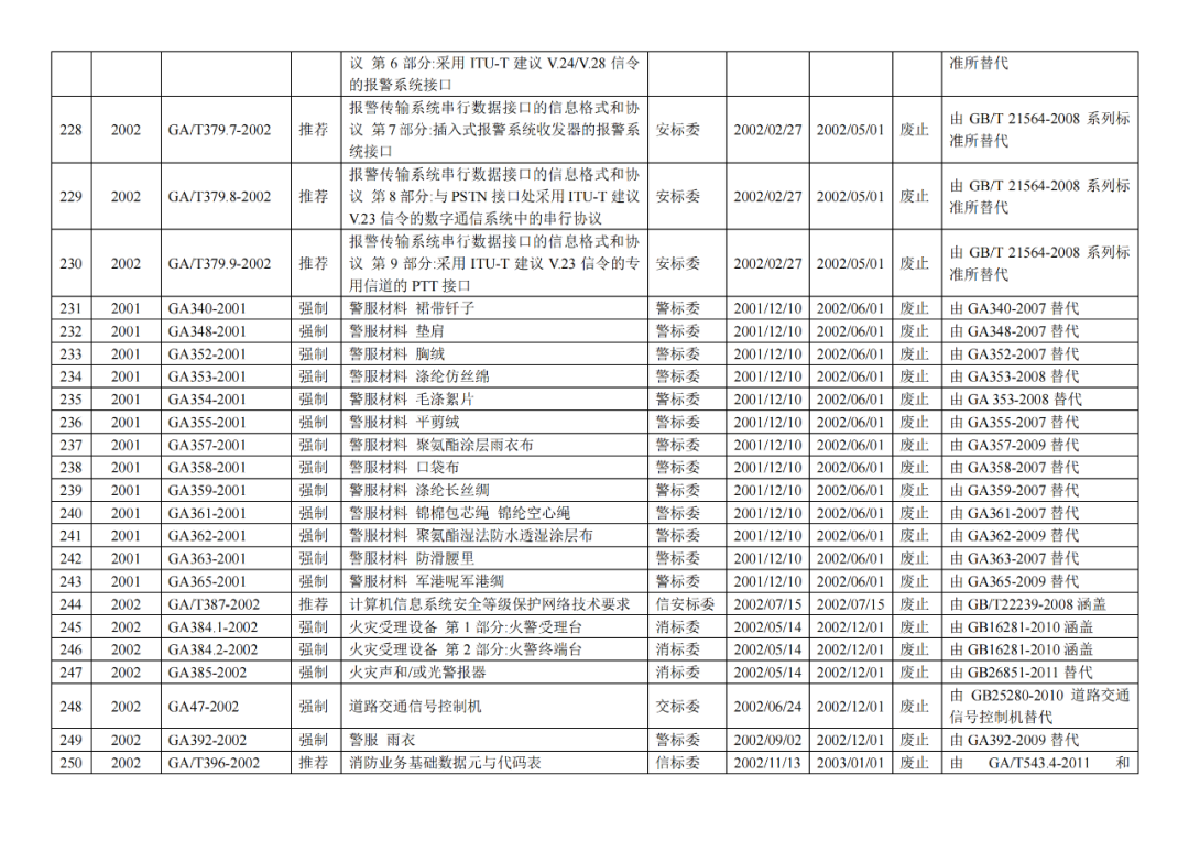 | 7 | 公安部《关于发布公共安全行业标准的公告(2018年度)》(2019年3月12日发布) |