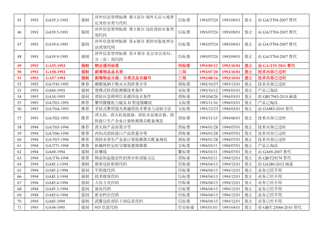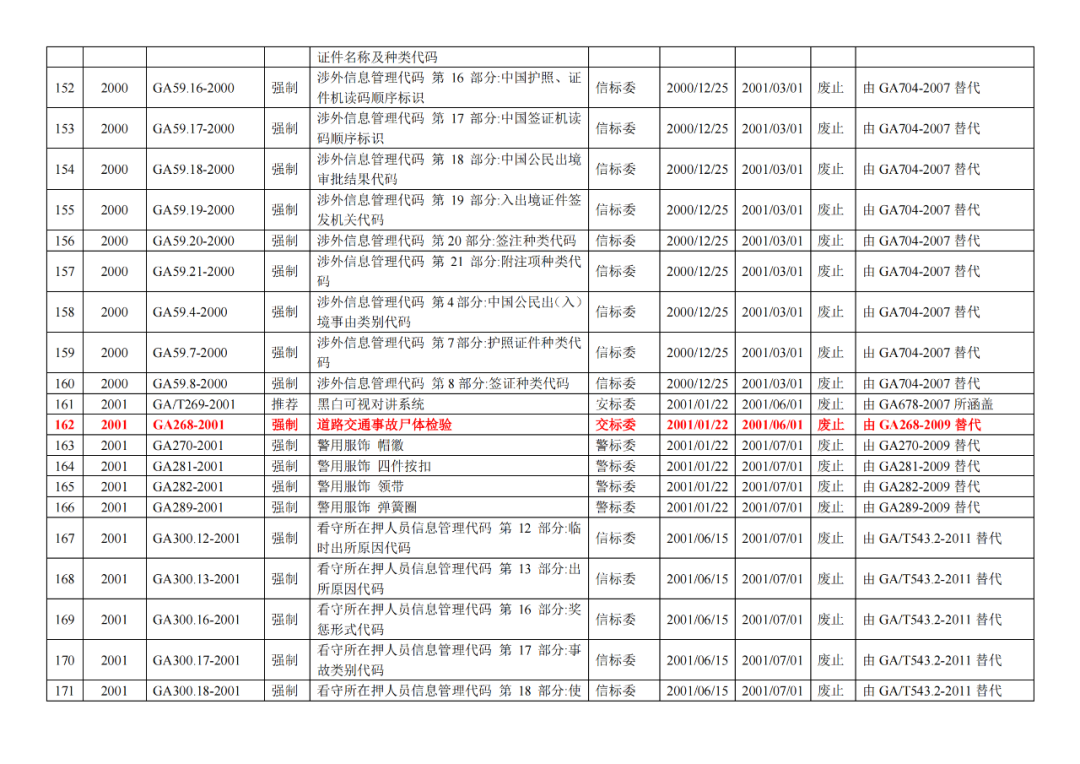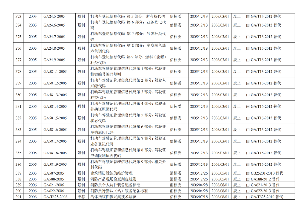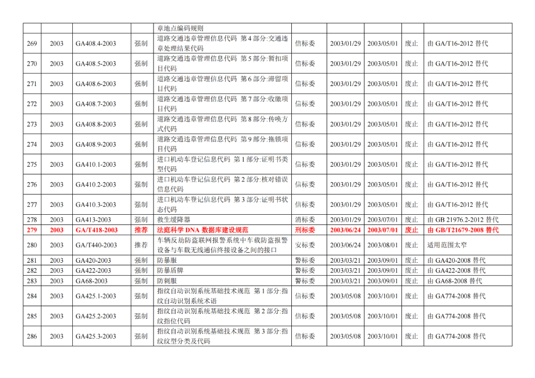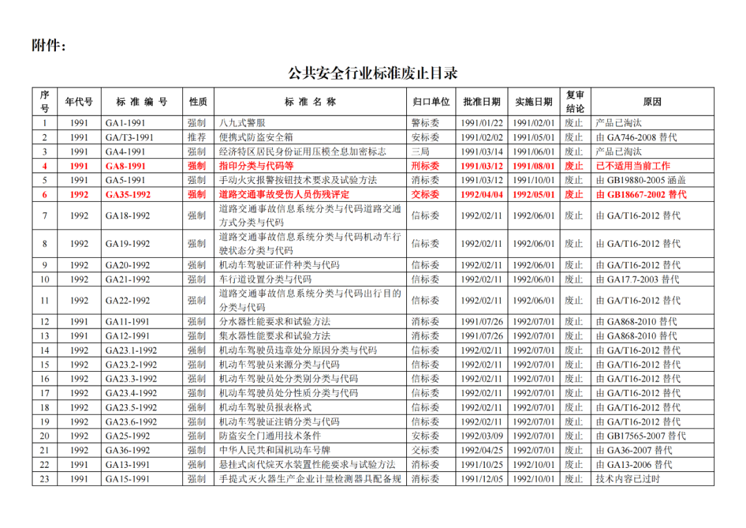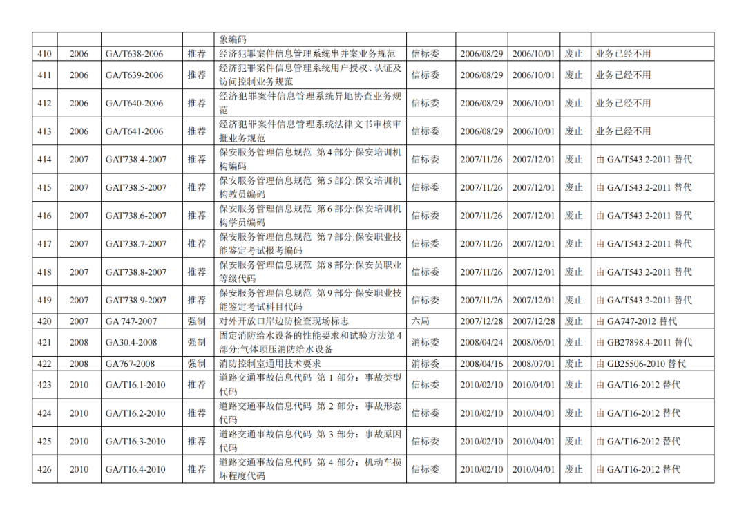 | 9 | 公安部《关于废止77项公共安全行业标准的公告》(2020年5月29日) (废止42项司法鉴定GA标准!) |