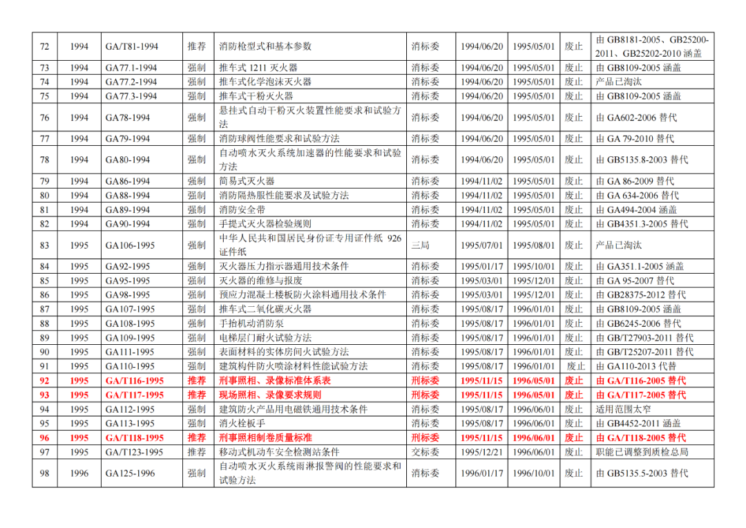 | 5 | 公安部《关于发布公共安全行业标准的公告(2016年度)》(2017年1月24日发布) |