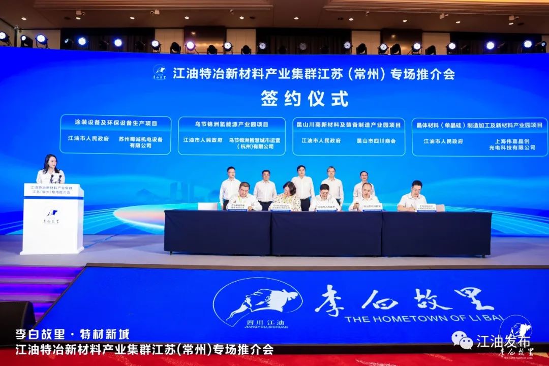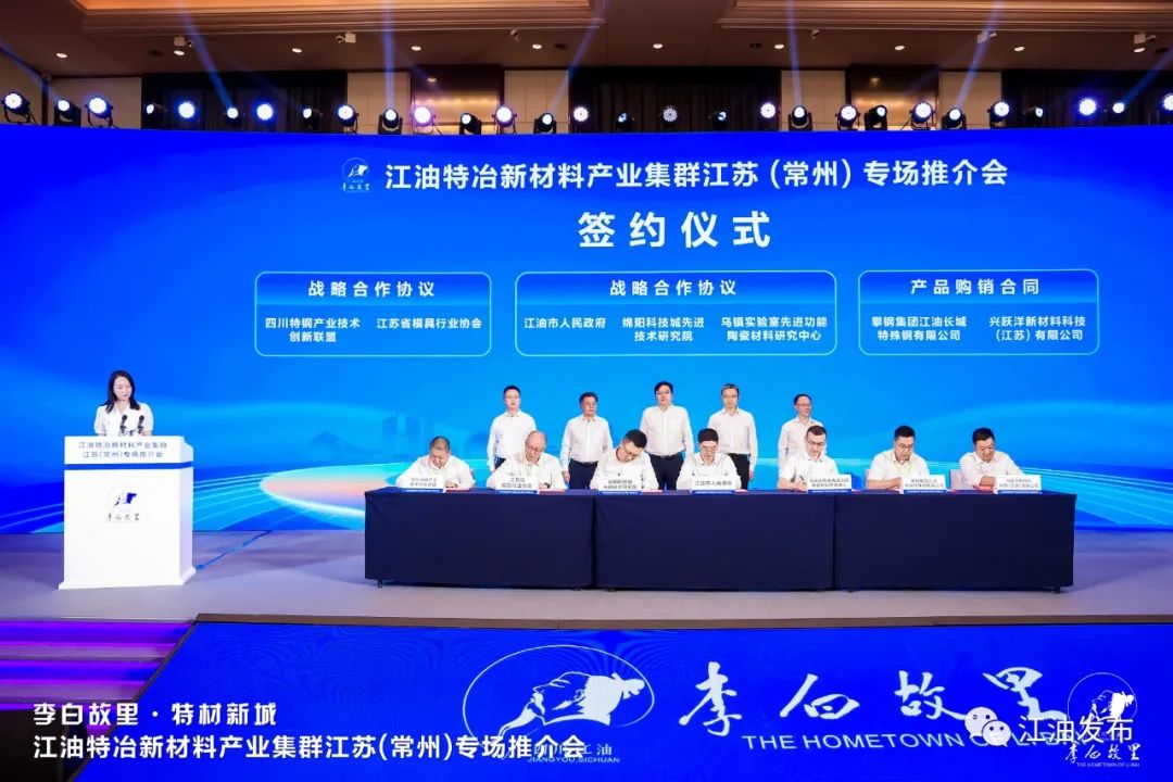 活动中,江油市人民政府分别与四川中山商会、乌节锦洲、伟嘉晶创、蜀诚机电签署项目投资合作协议;江油市人民政府与绵阳科技城先进技术研究院和乌镇实验室先进功能陶瓷材料研究中心签订三方战略合作框架协议;四川特钢产业联盟与江苏省模具协会签订了行业合作协议;攀长钢与兴跃洋签订产品购销协议。