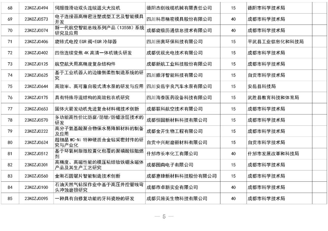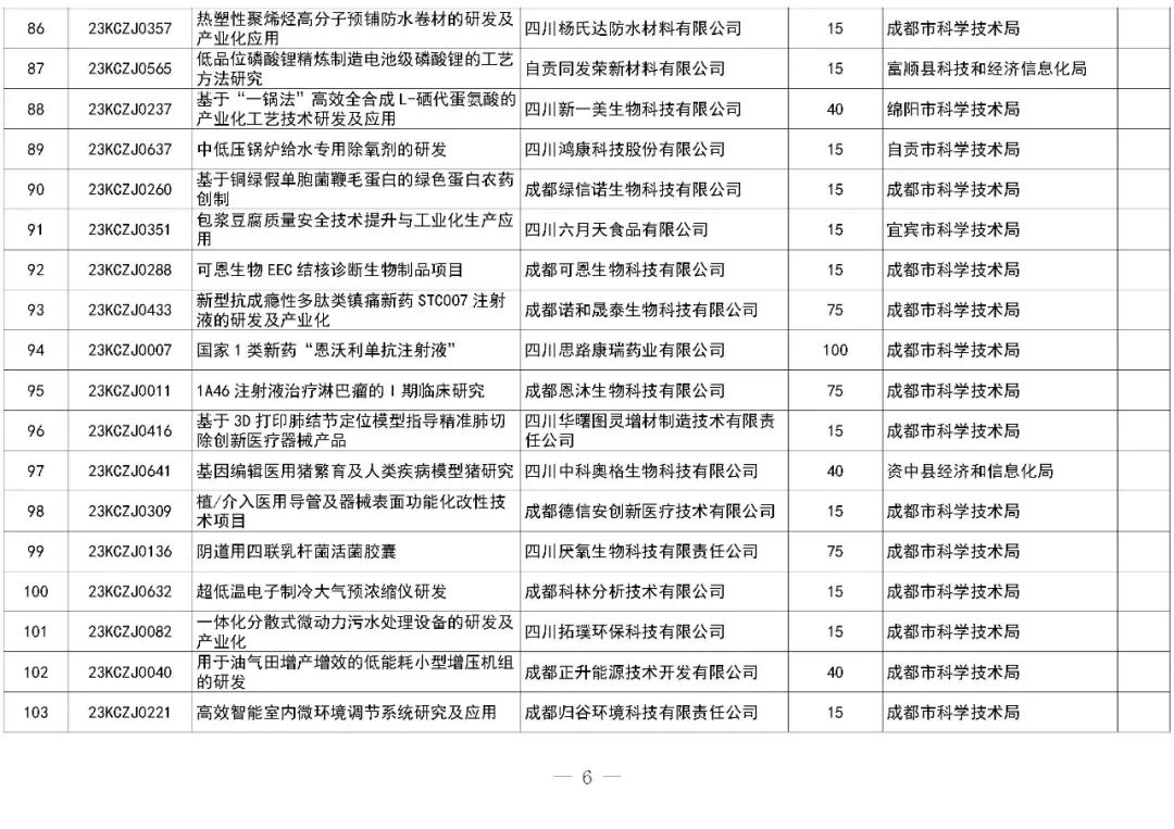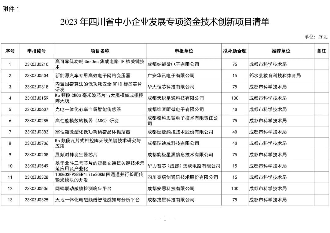 附件:1.2023年四川省中小企业发展专项资金技术创新项目清单