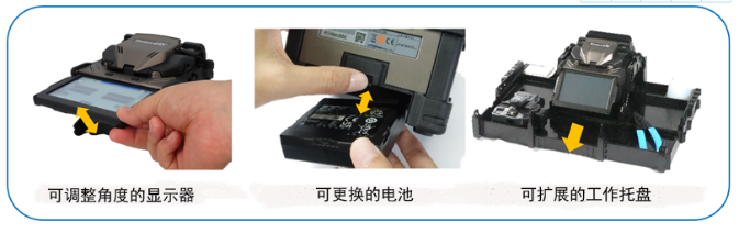 从夹持器卸下熔接光纤的速度也很快,如果操作员需要,『45S』同时打开夹持器的盖和防风装置。最后一点,与传统的藤仓包层对准式模型相比,新设计的管式加热器提供了更快的熔接保护套管加热。此外,『45S』的显示器位置可调节、易于更换的电池和可扩展的工作托盘(取决于可用空间),增强了在受限环境中的操作方便性。