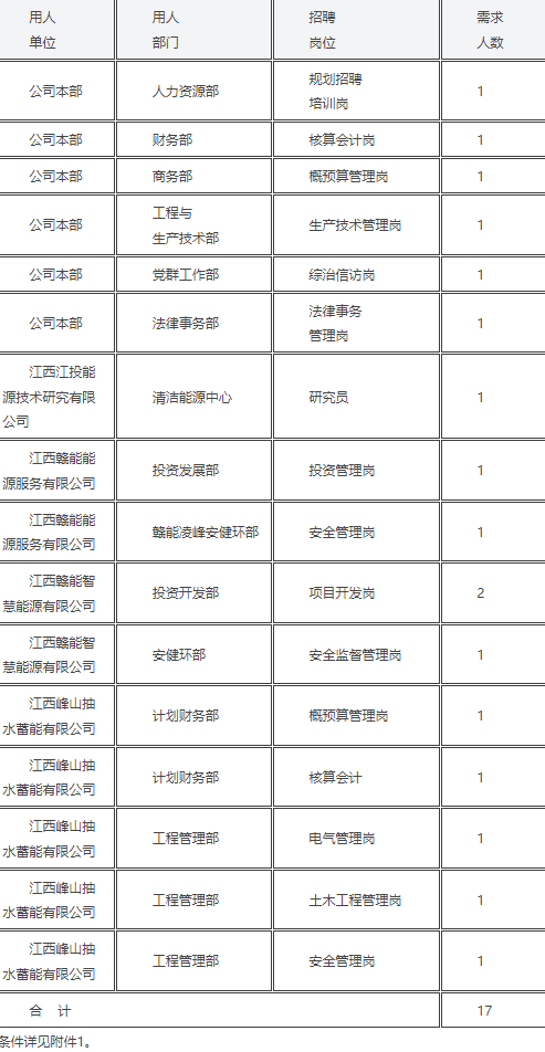 附件1:江西赣能股份有限公司及所属企业(含托管)公开招聘岗位信息表