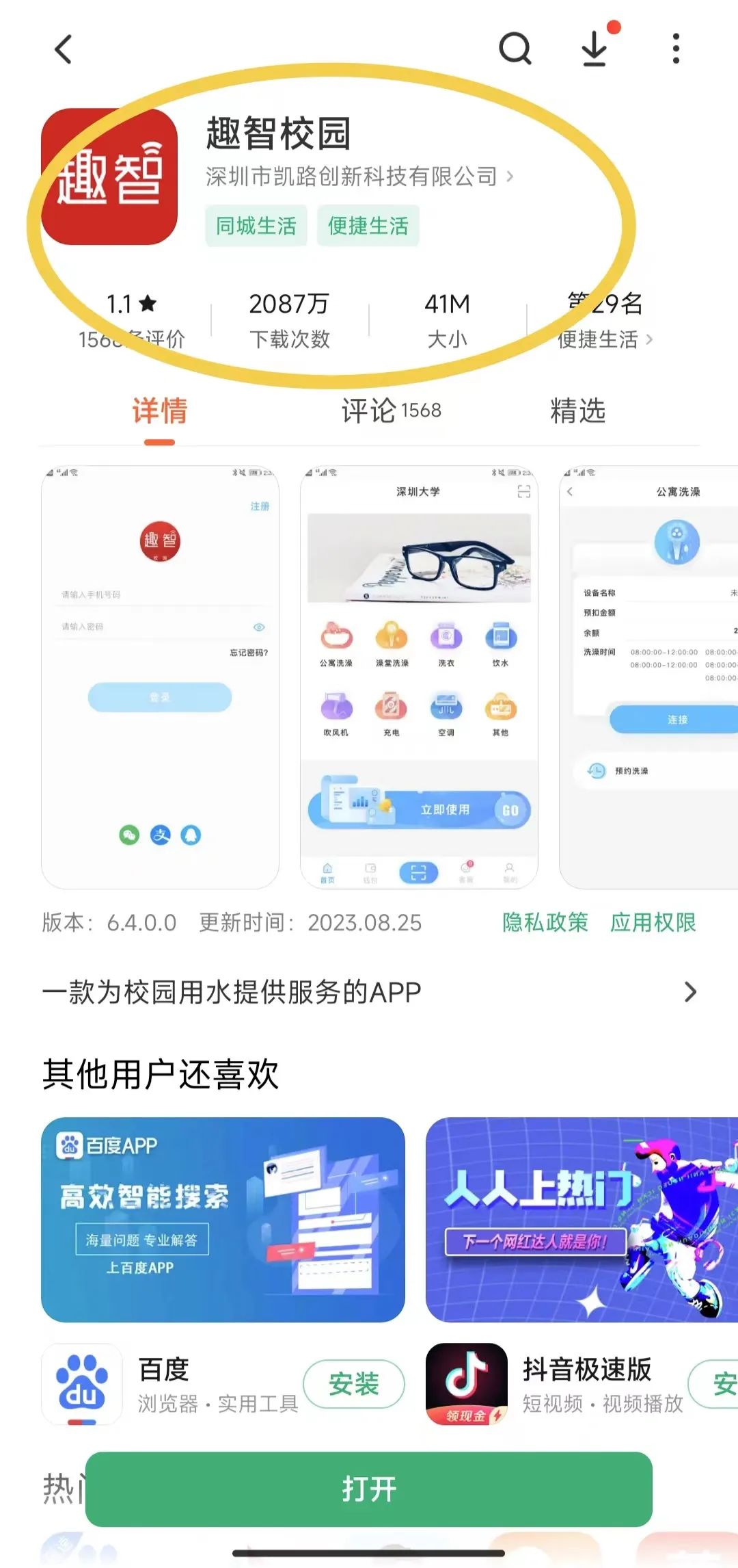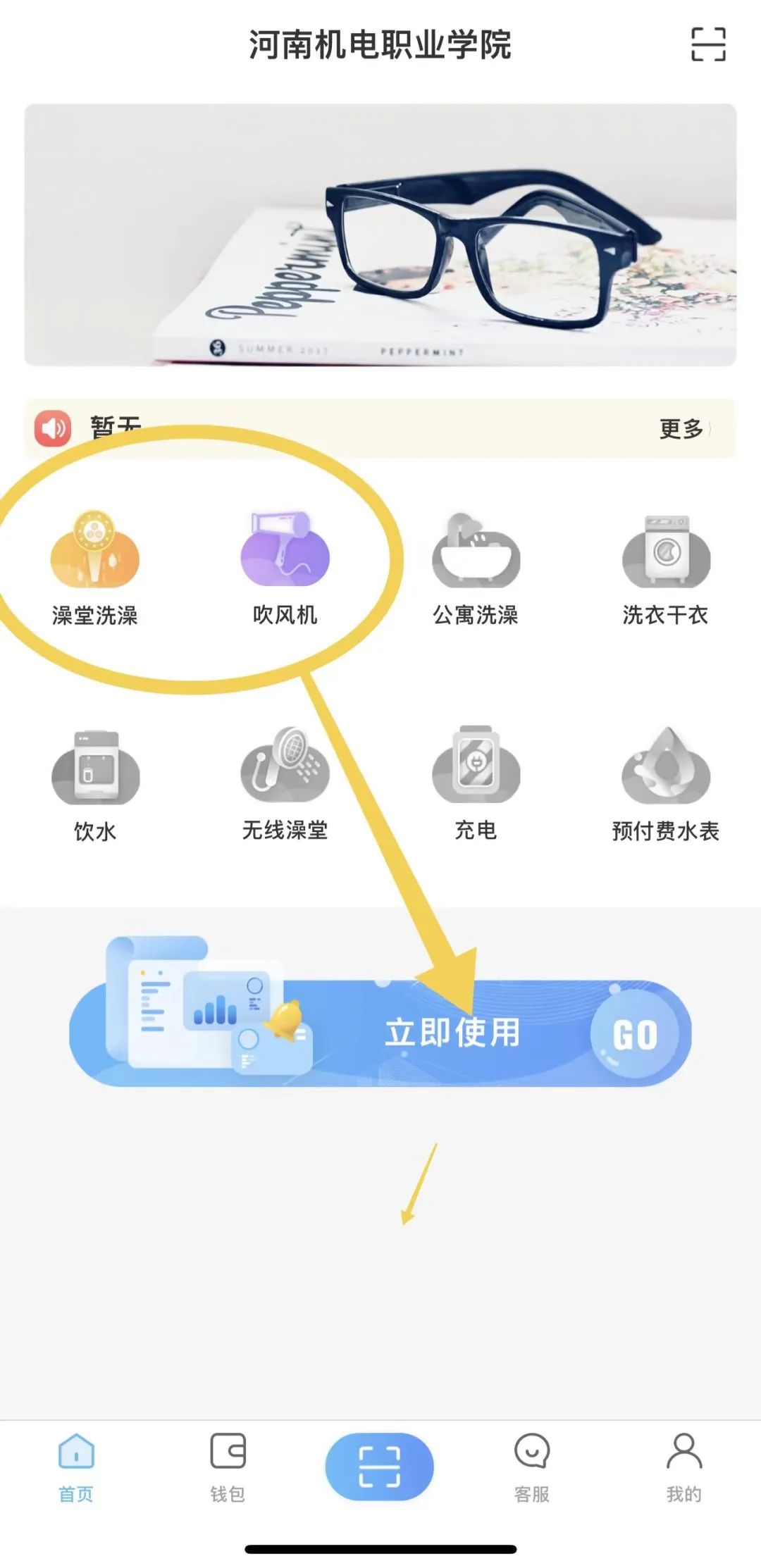 校内设有公共洗浴中心,位于5号公寓楼南侧的自强餐厅二楼。洗浴中心内部均为独立隔间,隔间内配备有储物柜,另有共享吹风机区域,同学们在手机上下载智趣校园APP,扫码使用即可。操作流程如下: