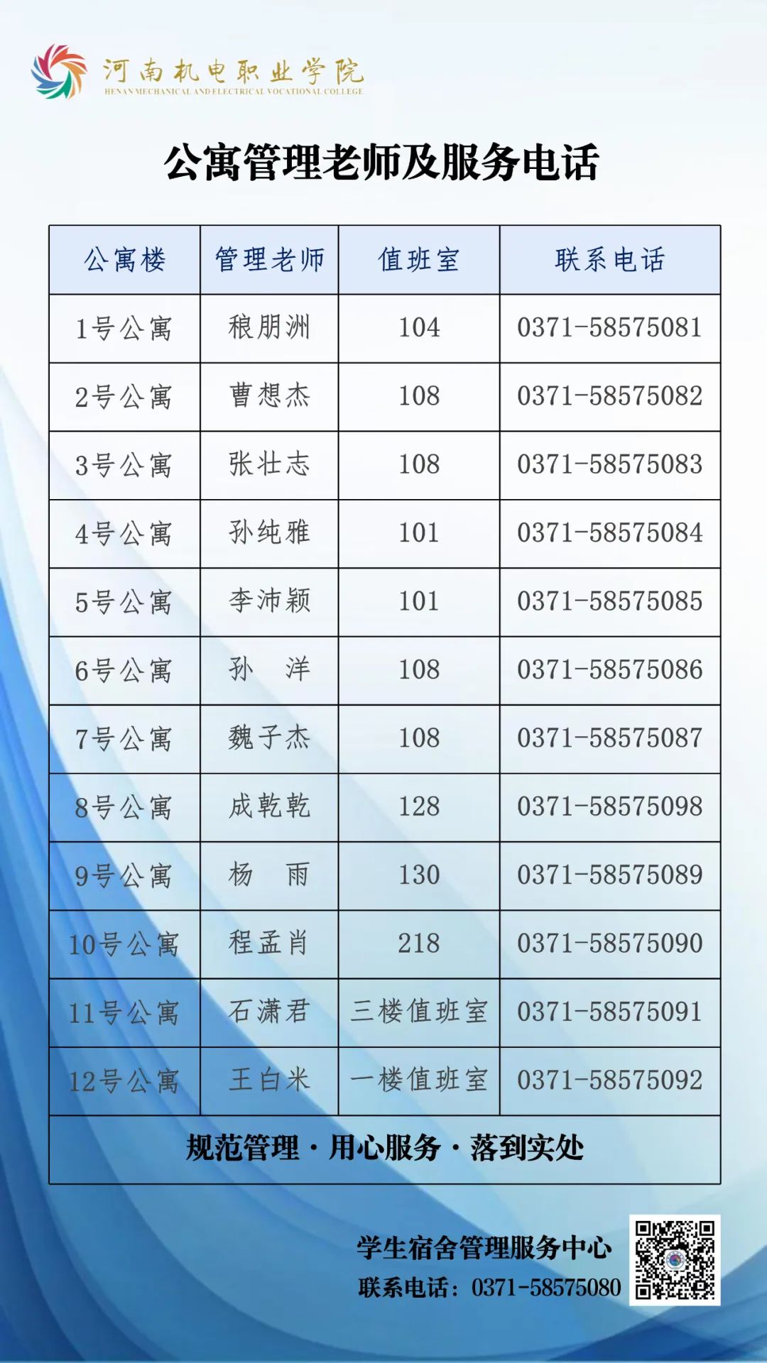 11.如何联系公寓管理老师?