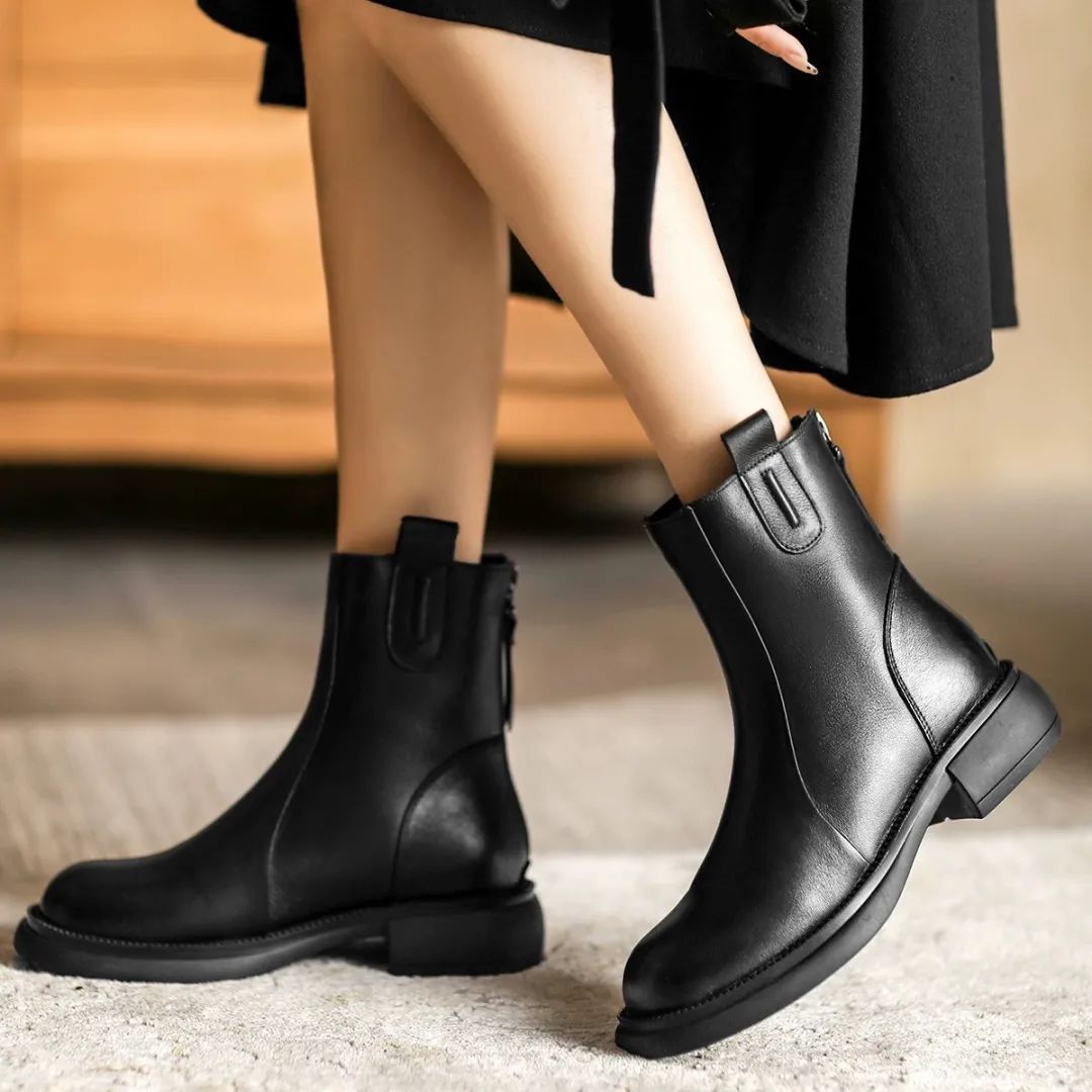 ✅靴筒高度恰到好处,鞋后跟拉链,穿脱方便