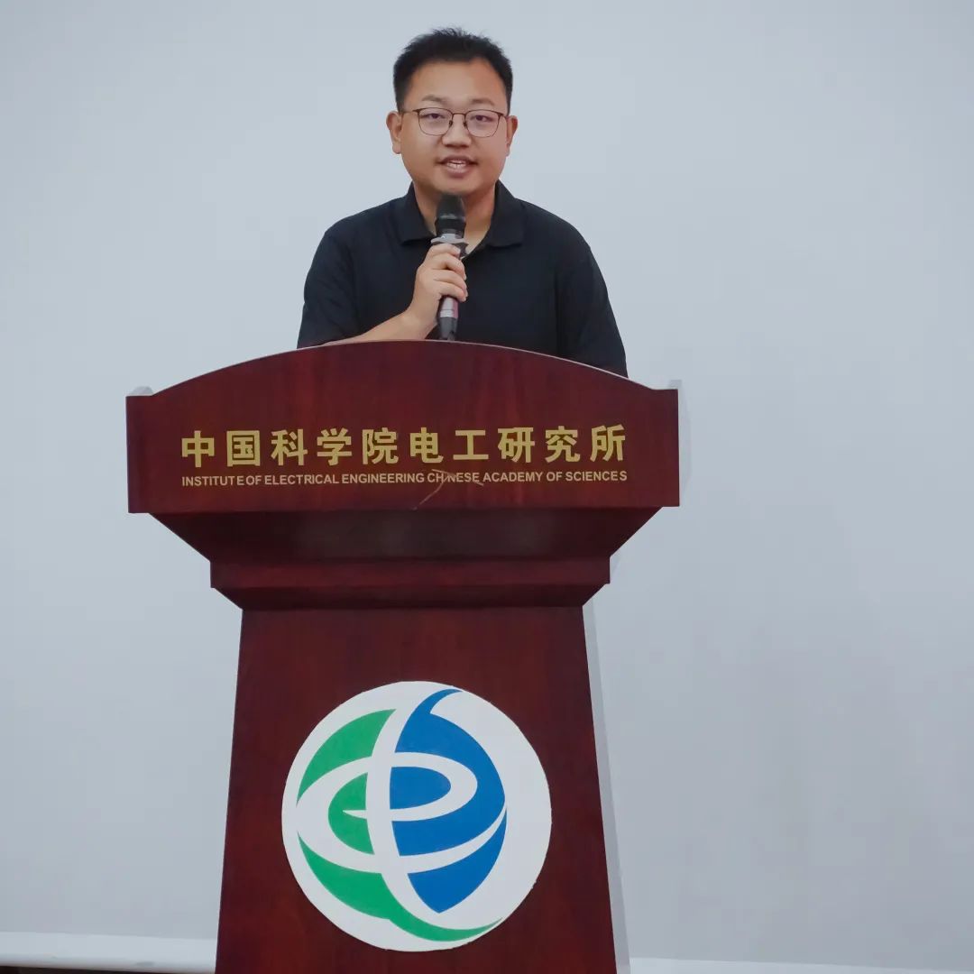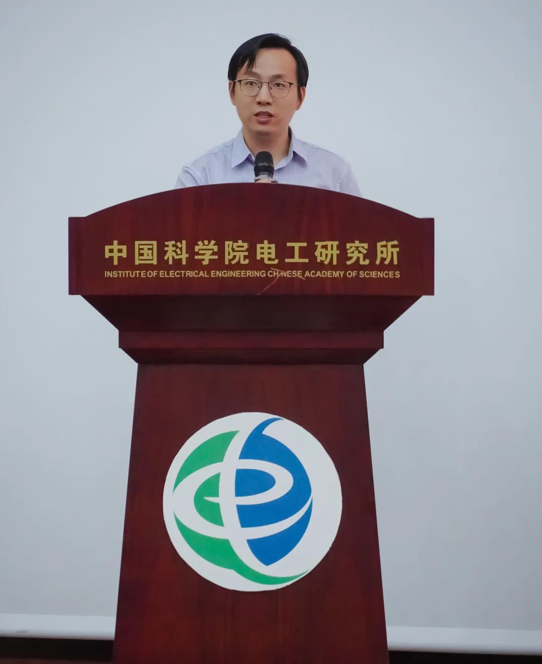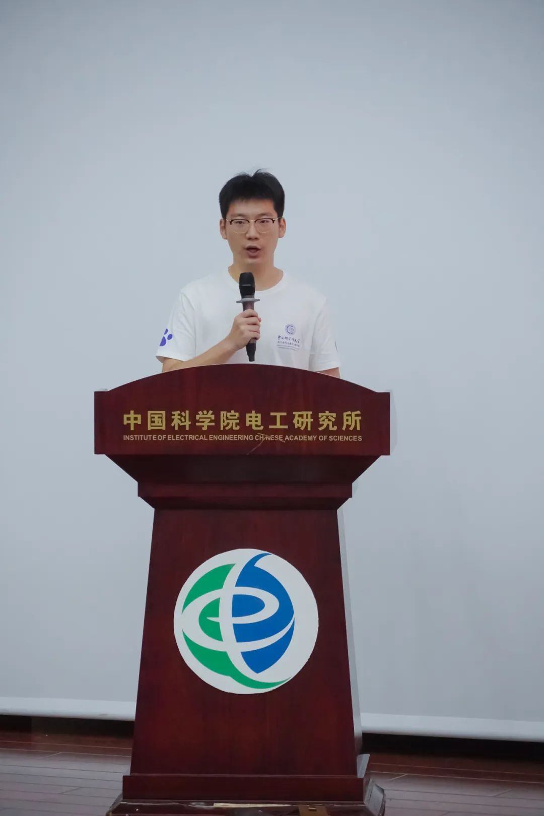 单开宇作为新生代表发言,他首先感谢电工所为各位同学铺就科研道路,各位同学更应怀抱对科研事业的热爱,不断修养品行、积累知识、德才兼备、果敢担当;更应脚踏实地,筑好德行和学识的根基,奔跑向前!
