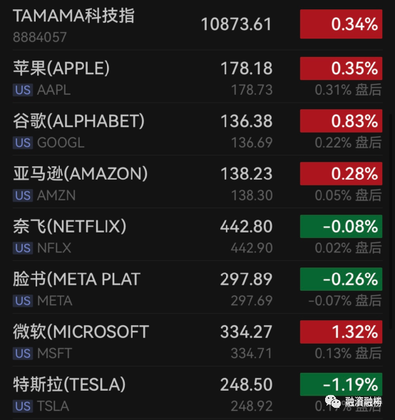 周五,科技股多数上涨,万得美国TAMAMA科技指数涨0.34%,谷歌涨0.83%,特斯拉跌1.19%,苹果涨0.35%,亚马逊涨0.28%,奈飞跌0.08%,脸书跌0.26%,微软涨1.32%。