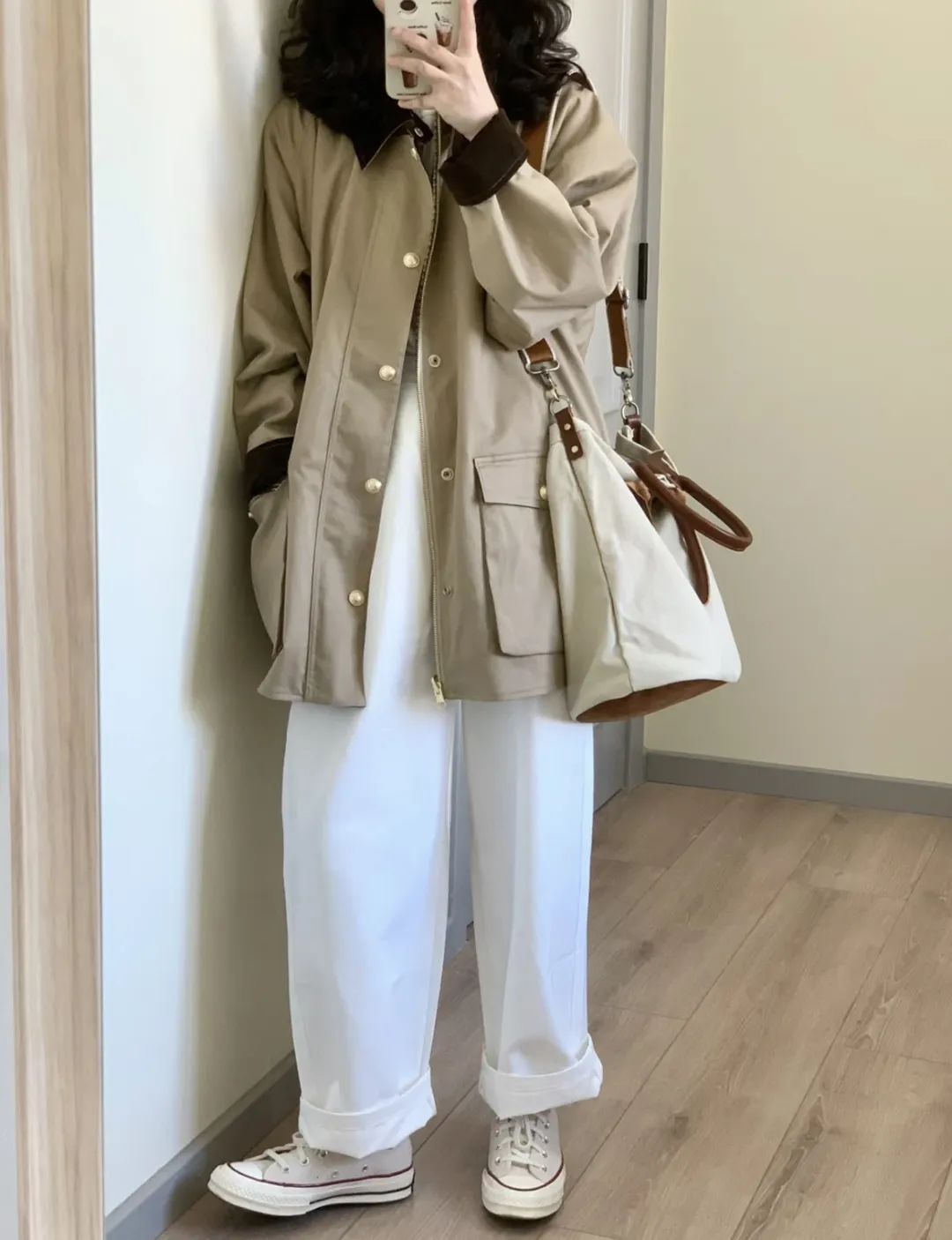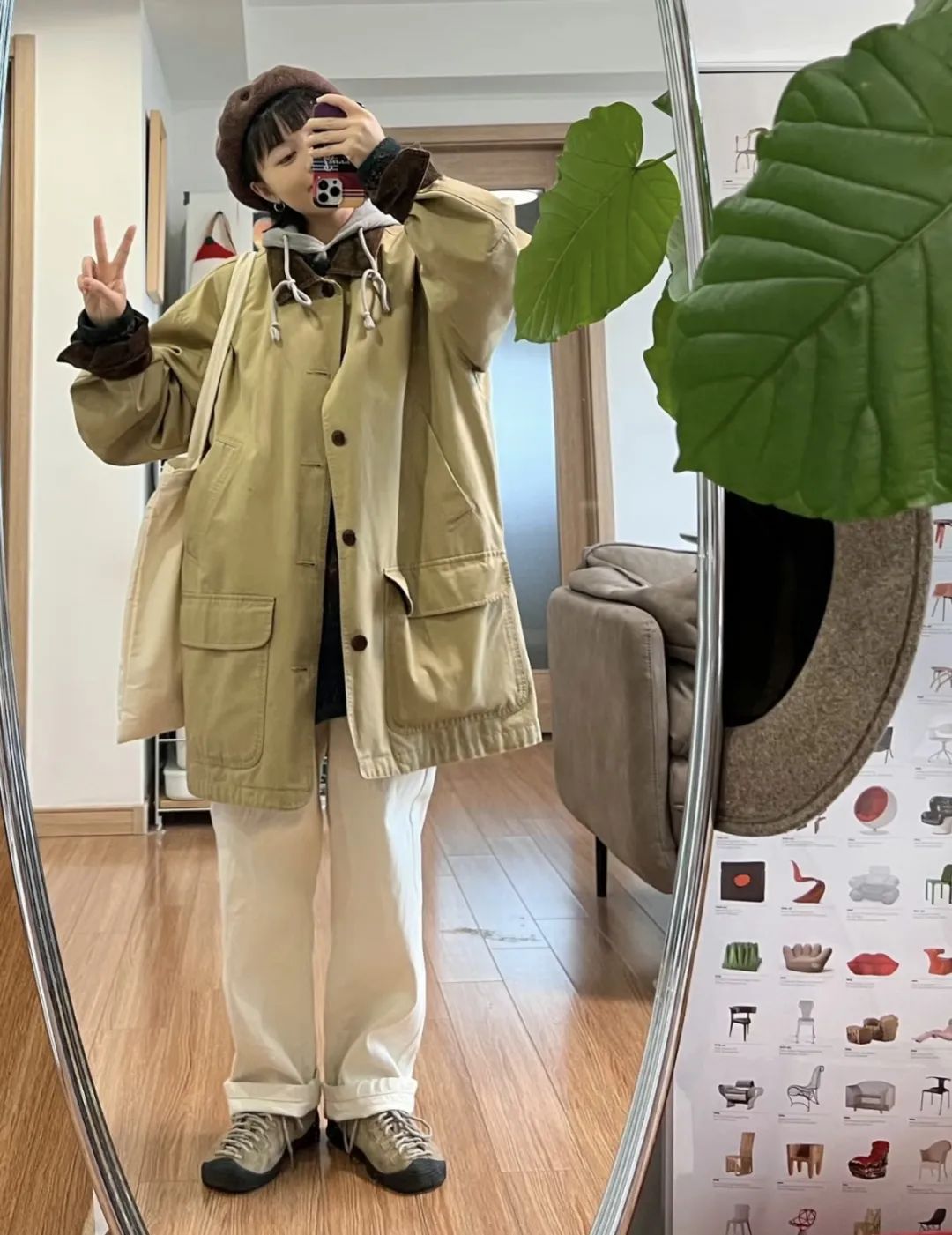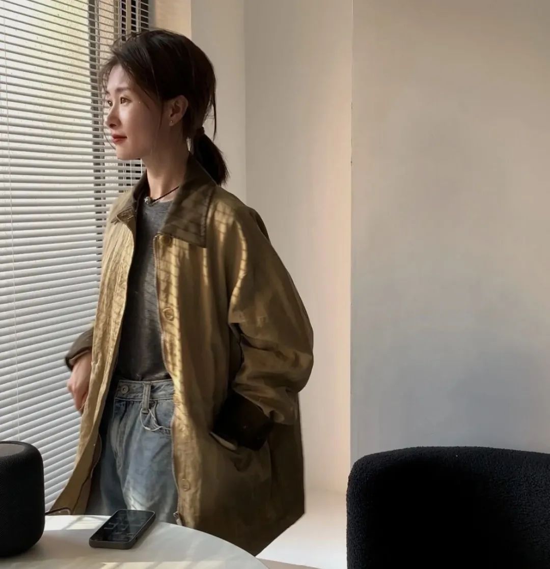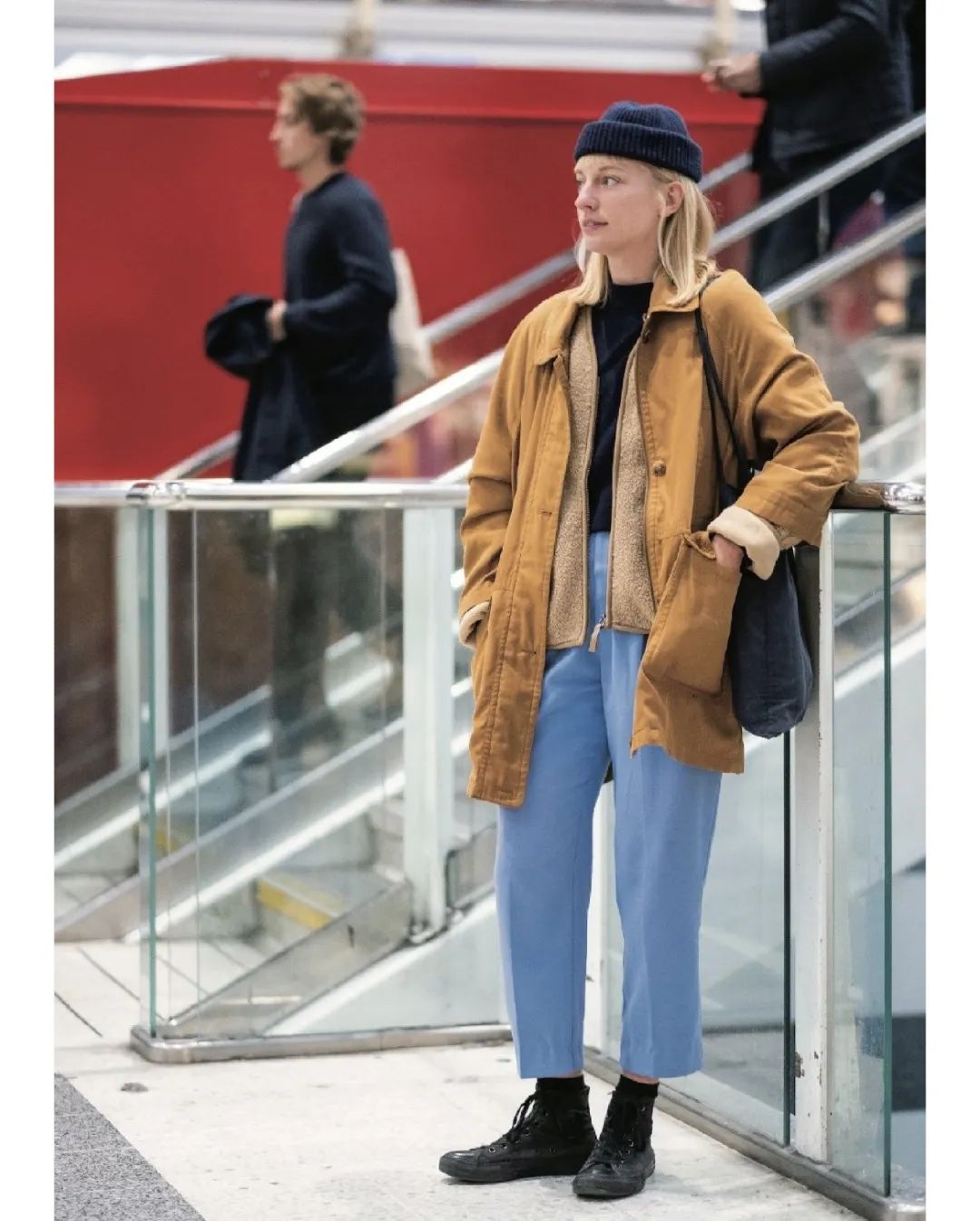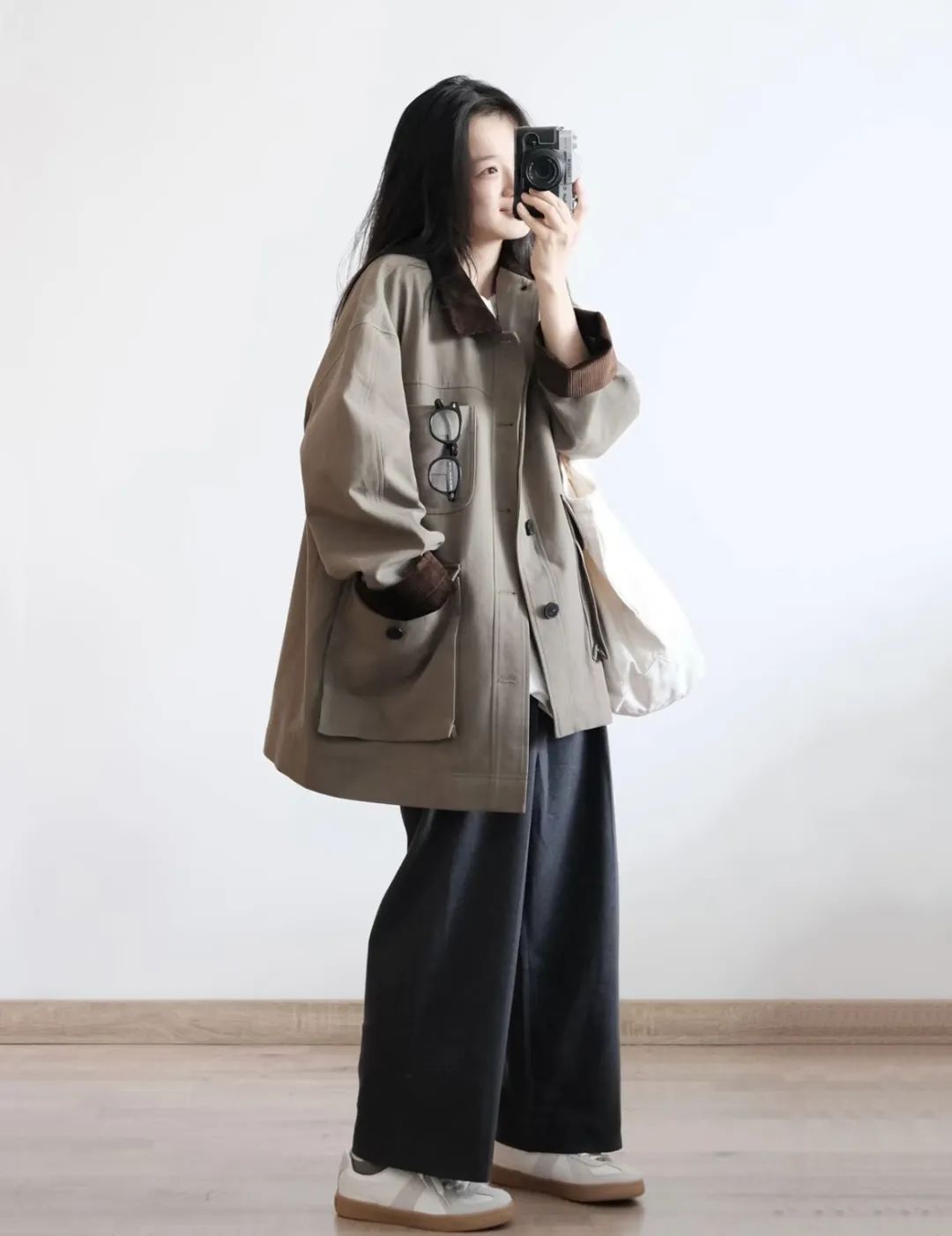 个人觉得长款猎装比风衣更中性,比短款外套更优雅,属于柔和型的工装风