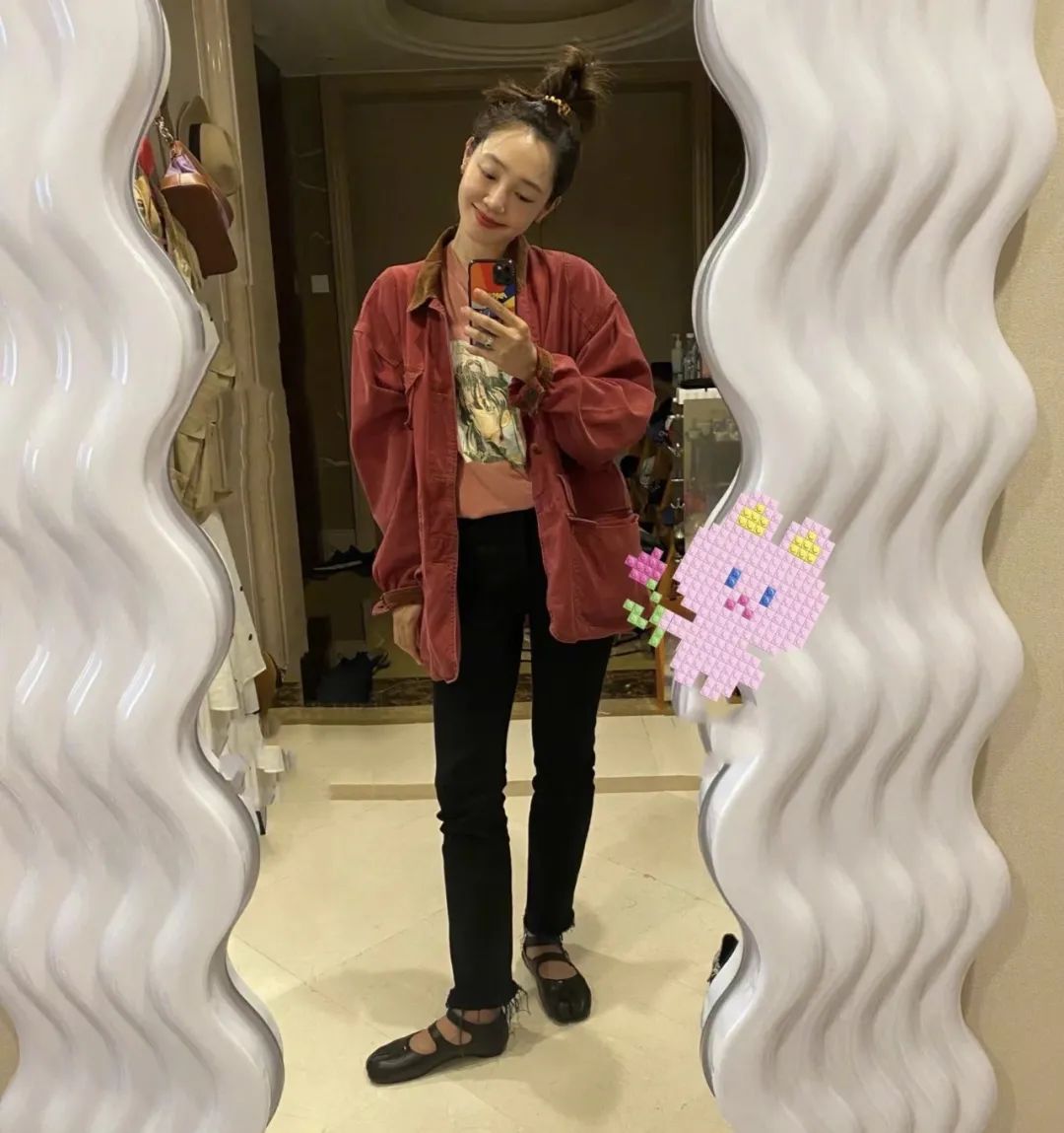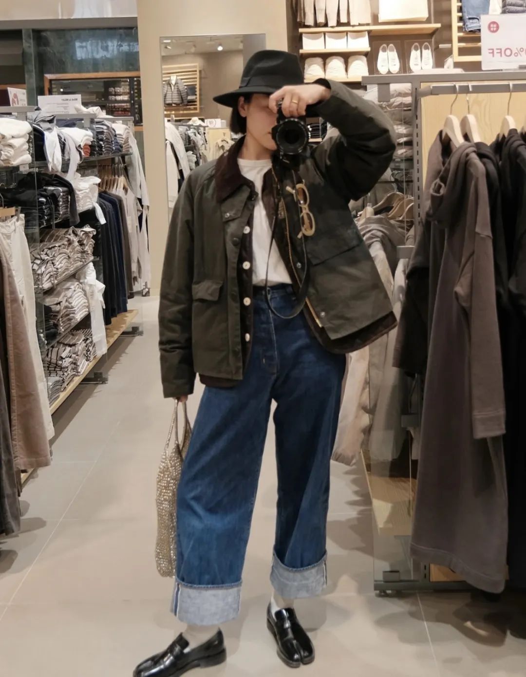 配宽松牛仔裤的穿搭是最有氛围感的,慵懒又舒适随性,散发着浓浓的优雅老钱气息