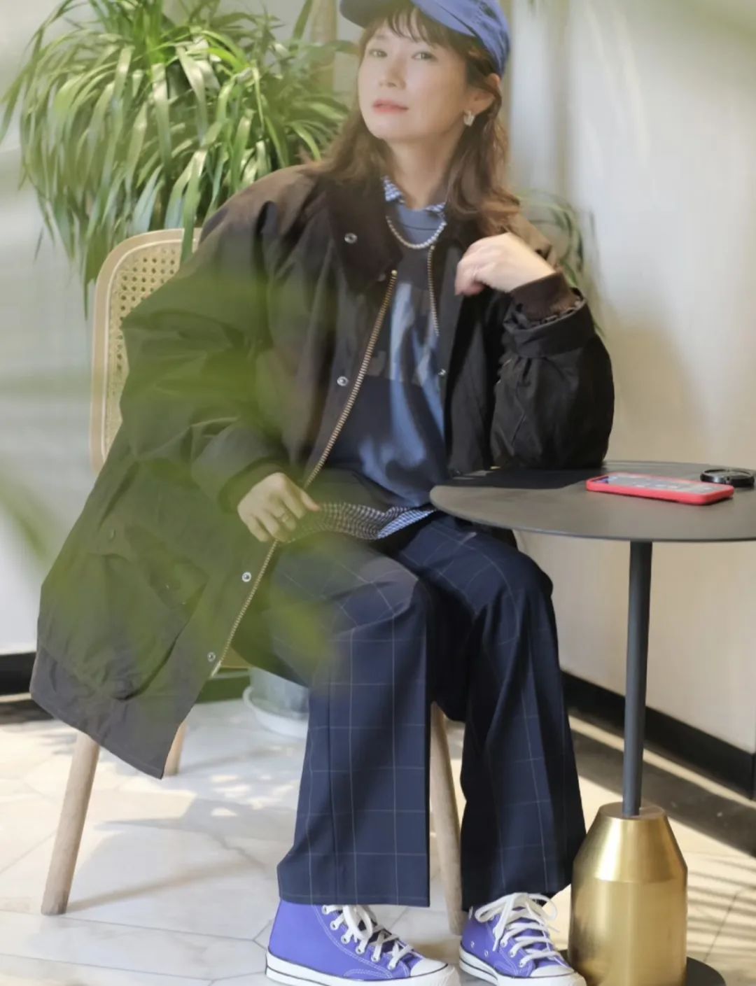 日系穿搭中很多会选择搭配宽宽松松的裤子,不强调比例,更注重舒适度