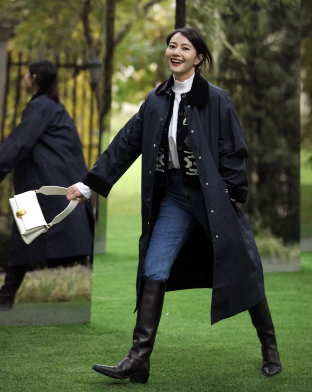 但是对于腿型不完美的姐妹就建议搭配牛仔裤,轻松拿捏低调贵气的英伦风