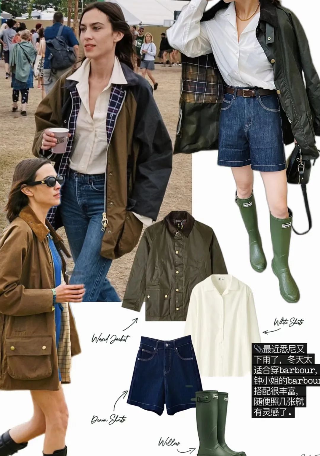 最简单的就是参考钟小姐的穿搭,作为Barbour的忠粉,她贡献了很多的搭配图