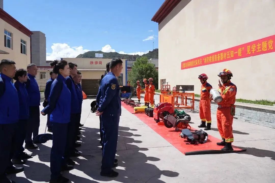 为进一步推进“雪域蓝焰·党旗红”党建品牌创建活动向纵深发展,有力推动党建、队建、业务深度融合,努力打造“学习型”机关,充分发挥机关示范引领作用;9月8日上午,昌都支队机关组织全体干部、消防员、文员深入新城联络路特勤站,以主题党日活动形式,开展“消防救援装备五知一能”见学活动,深入学习消防基础业务。