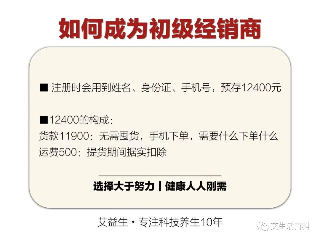 加入艾益生,结果有三种:(无任何加盟费用, 11900元是货款充值费用)