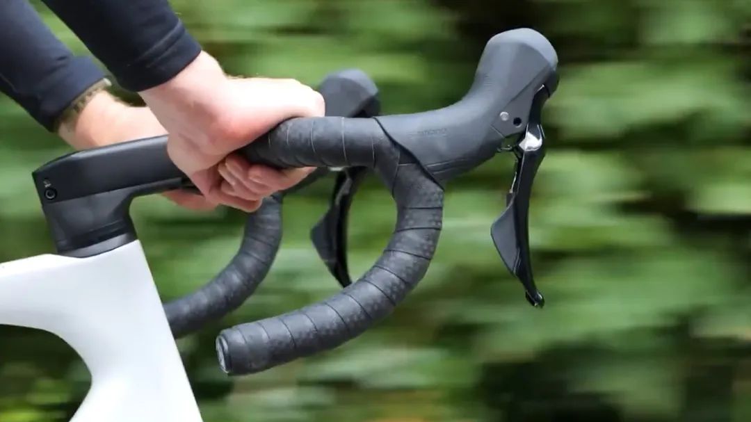 但可惜的是,105并没有保留圈刹,蓝厂的策略已经很明显了,竞赛级别保留圈刹,满足少数高水平玩家,而对于其他用户,有易于操控和更安全的碟刹就足够了。除了速别的升级,人体工学也有大幅度的改善,105的手变引入类似GRX的刹车手柄,手柄向内的弧度有所改善,缩短间距,下把位刹车更容易了,也更舒服了,这一次也算的上一种机械飞升。