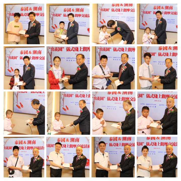 活动的最后,林楚钦主席、徐惠深主席、李桂雄理事长还分别向前来参加观摩仪式的华人华侨青少年代表及儿童发放节日红包,并祝愿他们能够在未来健康快乐成长,好好学习,努力在海外为继承和发扬传统中华文化、家乡文化及为未来泰中两国友好等做出自己的贡献!并与参与此次观摩仪式的青商会成员、在泰华人华侨代表、潮籍乡亲代表等合影留念,共庆佳节!