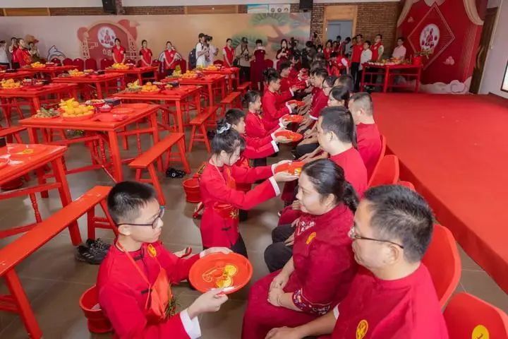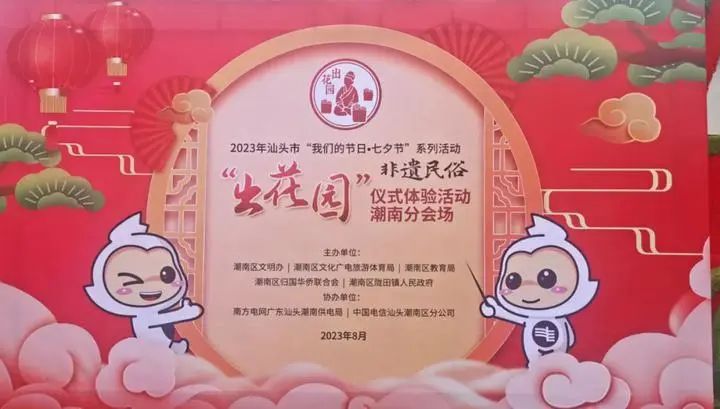 在各位领导致词祝福及简单寒暄过后,在华瑶青少年潮乐团演奏一曲精彩的潮州大锣鼓《滨海龙腾》的乐曲声中,2023年汕头市“我们的节日-七夕节”系列活动出花园非遗民俗仪式体验活动潮南分会场正式开始。
