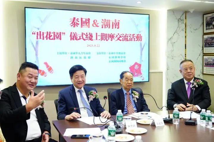 2023年8月22日(农历癸卯年七月初七),正值中华民族传统佳节七夕节当天,由汕头市潮南区文明办、潮南区文广旅体局、潮南区教育局、潮南区侨联、陇田镇政府主办,潮南供电局、中国电信潮南分公司协办的2023年潮南区非遗民俗“出花园”仪式体验活动在陇田镇东华村文化大礼堂举行,为20位青少年举办“出花园”仪式。汕头市潮南区委书记许广圻,区长张晓铿出席“出花园”仪式并致词。同时,为加快推进潮南历史文化保护和传承,充分向海外华侨华人展示这项潮汕文化的独特魅力,进一步增强海外华人华侨青少年对中华民族优秀传统文化的认同感和自豪感。由泰国华人青年商会联合潮南区归国华侨联合会主办、泰国中华总商会、泰国潮州会馆、泰国潮阳同乡会作为支持单位的“泰国&潮南”出花园仪式线上观摩交流活动在青商会会议厅举办。泰国中华总商会林楚钦主席、泰国潮州会馆徐惠深主席、泰国潮阳同乡会李桂雄理事长、泰国华人青年商会李嘉淳会长受邀出席参加并致词。当天活动现场,青商会还组织了在泰华人华侨代表、潮籍乡亲代表、华人华侨青少年孩童代表等一同观摩出花园仪式,共同学习和认知继承传统中华文化。此次活动由汕头市潮南区归国华侨联合会主席张嘉慧进行现场主持。泰国华人青年商会常务副会长庄基锋、名誉会长肖沛侨受邀出席潮南区主会场活动。