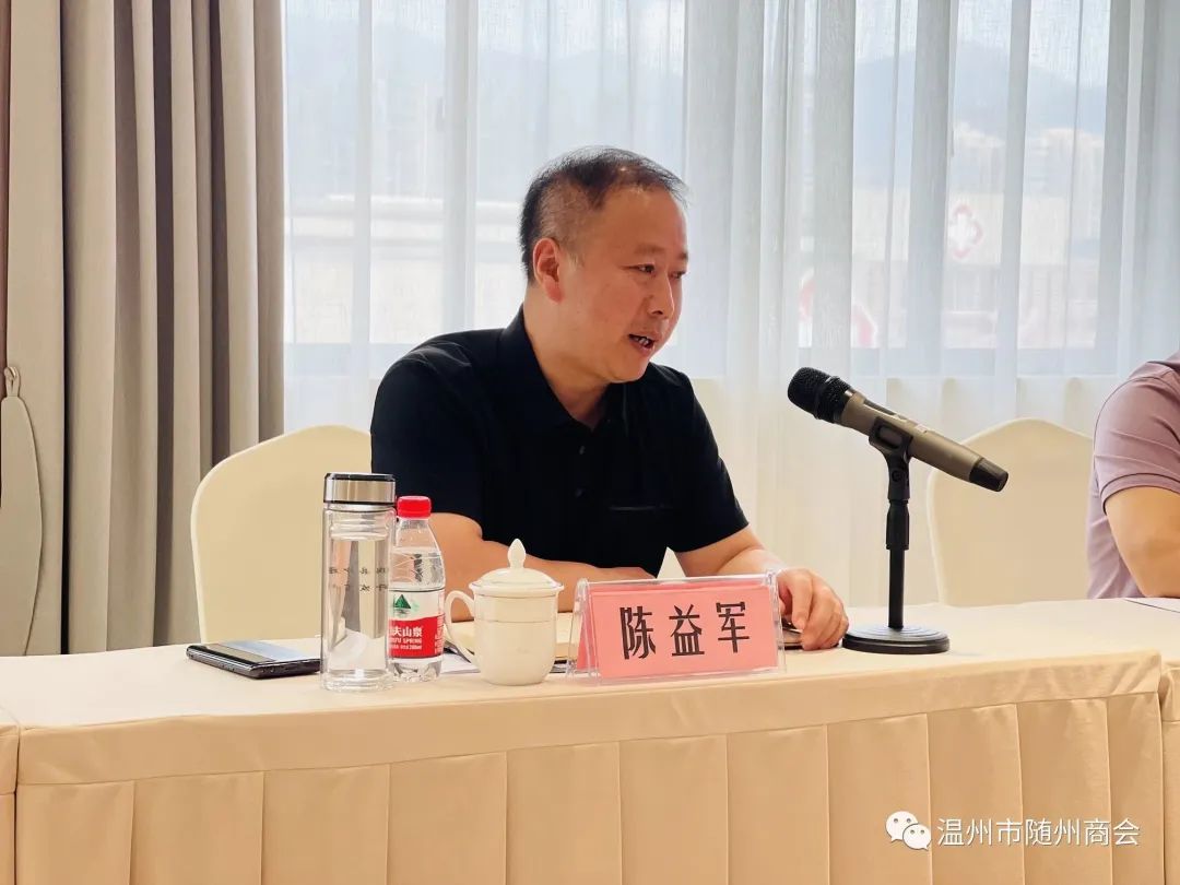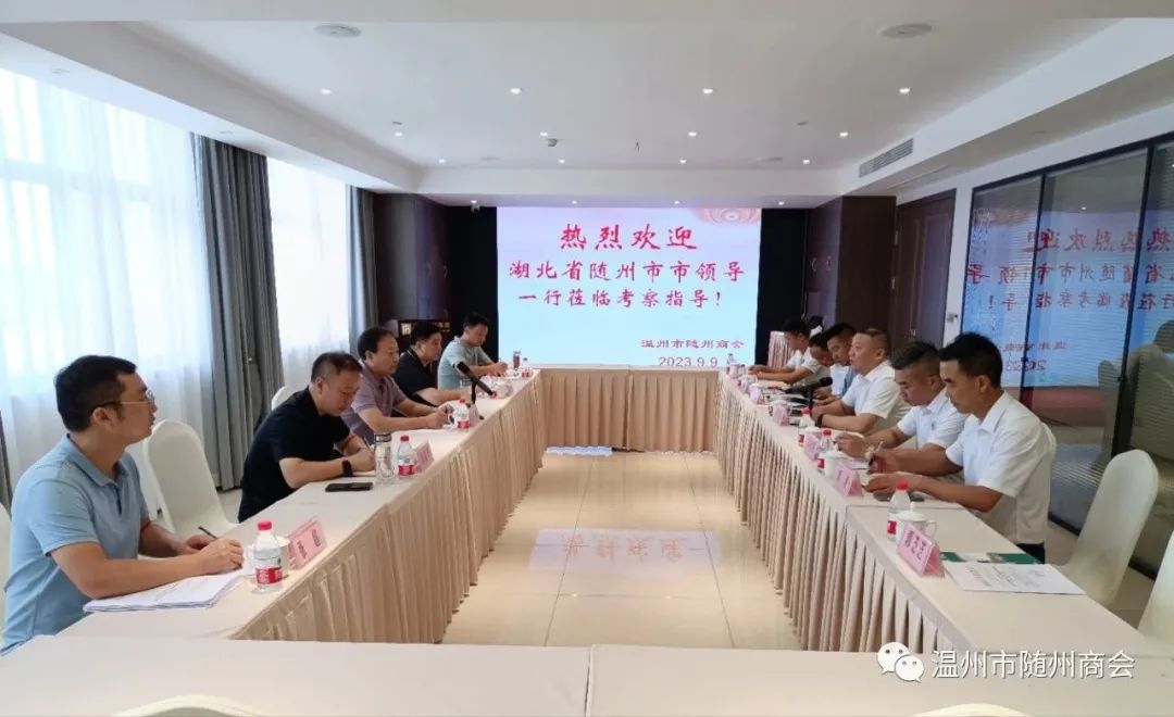 2023年9月8日-9日,随州市市委组织部副部长金鑫、高新区党工委副书记、管委会常务副主任陈益军、随州市委老干部局副局长续立勇等领导一行赴温州招商考察,期间到访温州市随州商会,看望会员,并到商会会员企业开展考察调研活动。