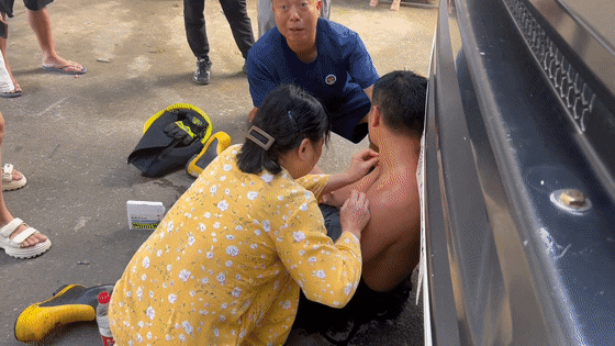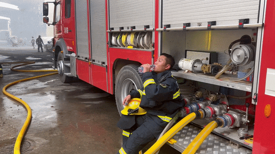 一名消防人员出现中暑症状