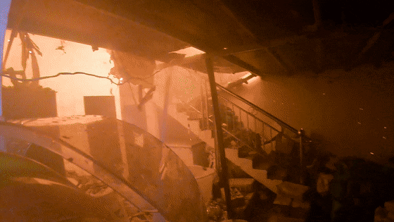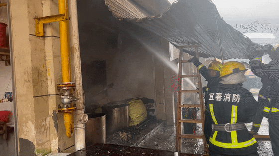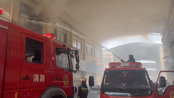 作坊内部大部分明火已被扑灭