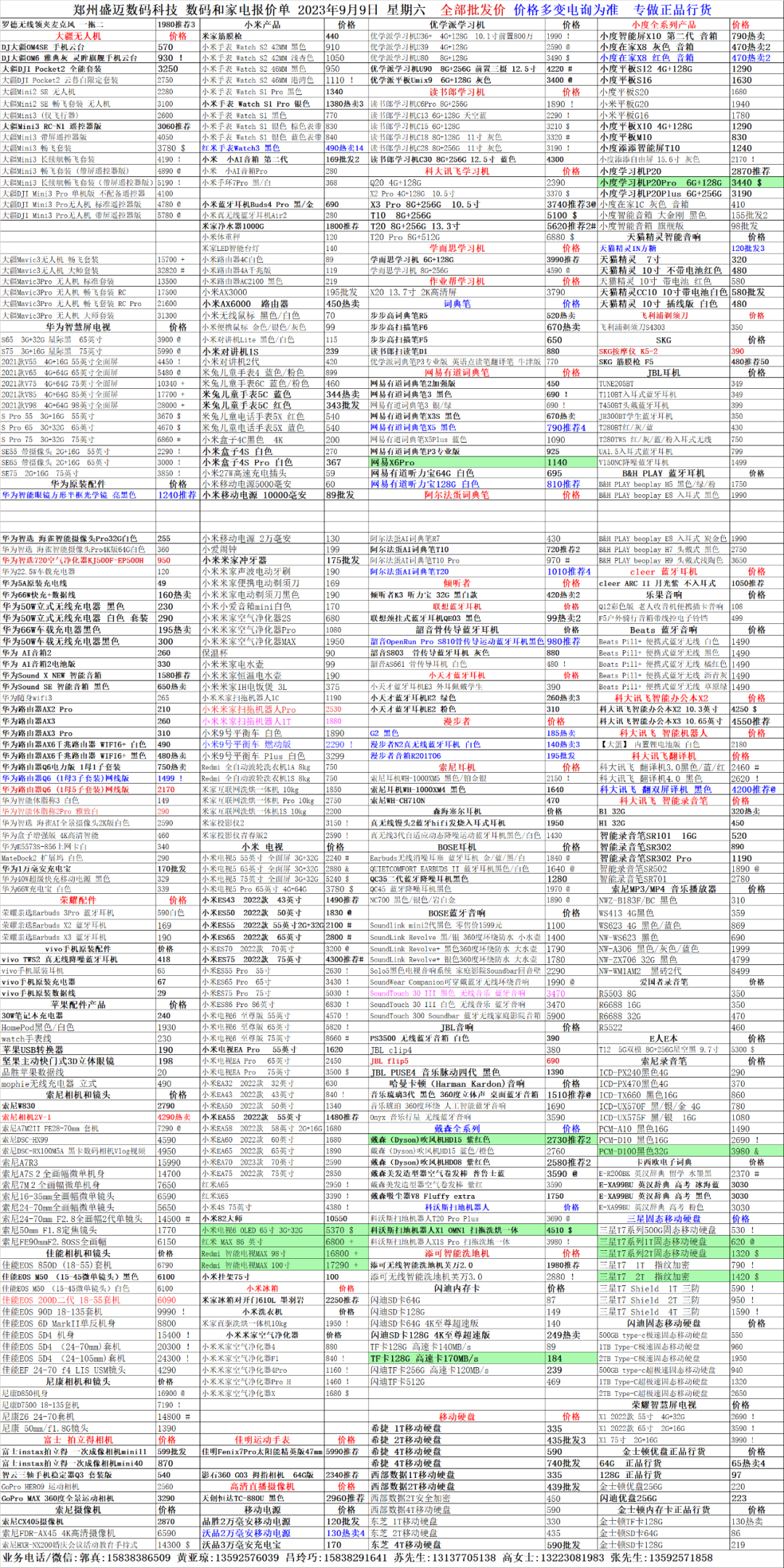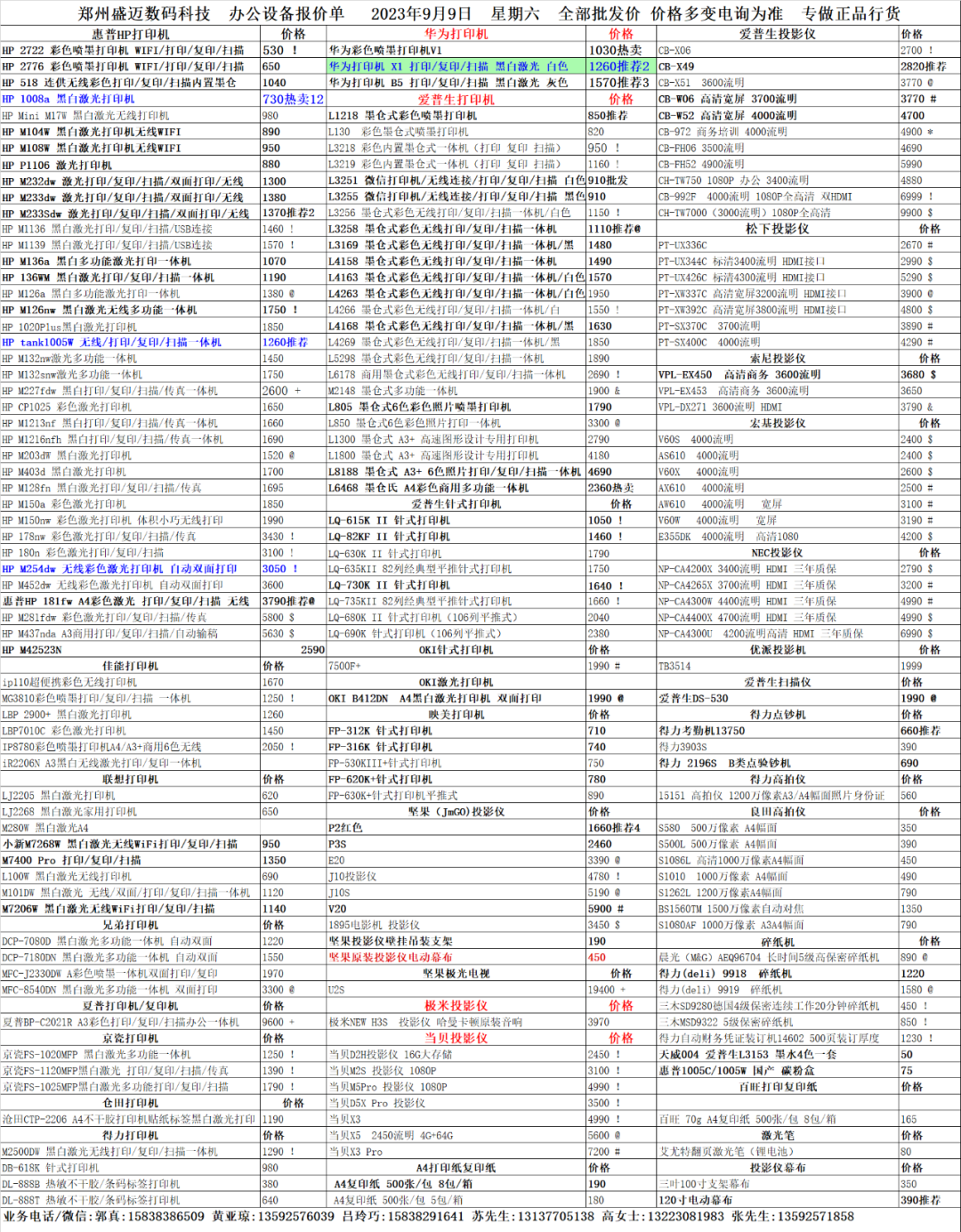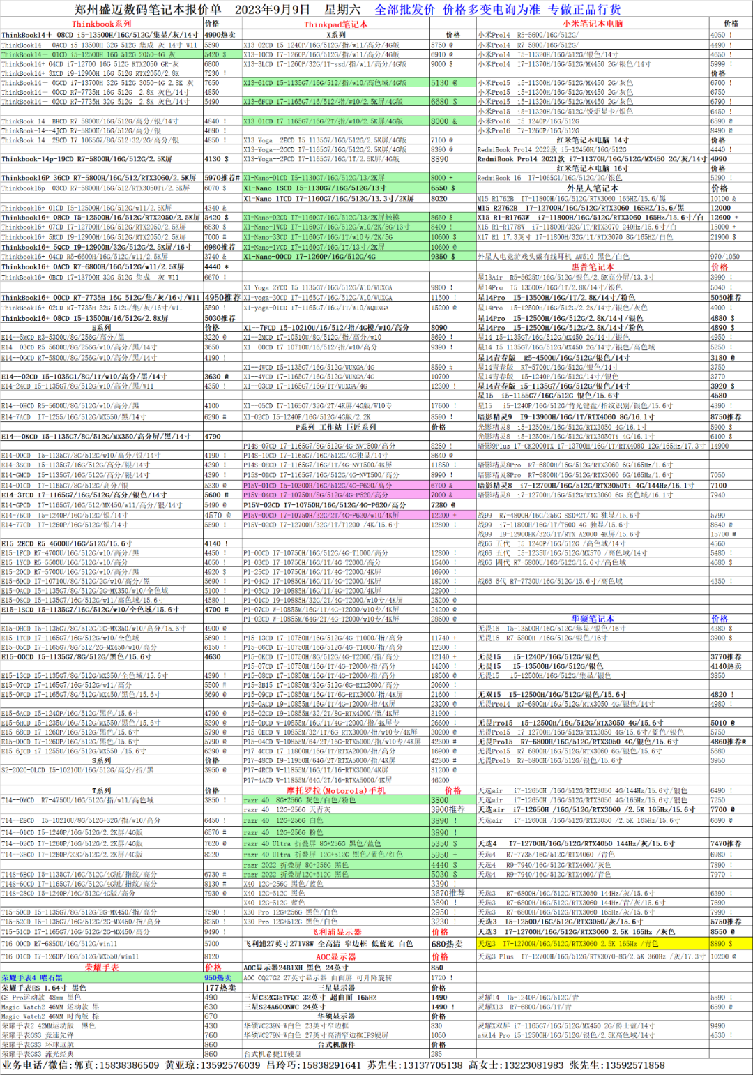 郑州盛迈数码科技2023年9月9日手机/电脑报价