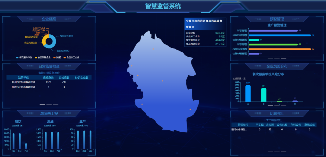 宁夏世纪信通信息安全有限公司自主研发的智慧食安监管平台,以食品安全过程控制、全链条信息化为突破点,不断加强政府侧对食品安全监管效能和保障能力。